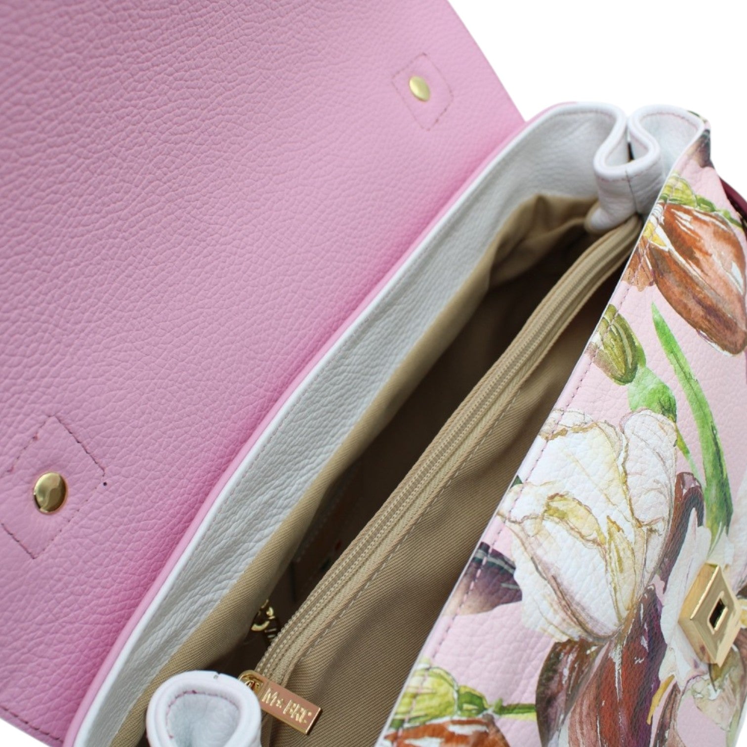 M Brc Borsa a Mano Rosa Floreale Linea Mamma Mia con Tracolla da Donna