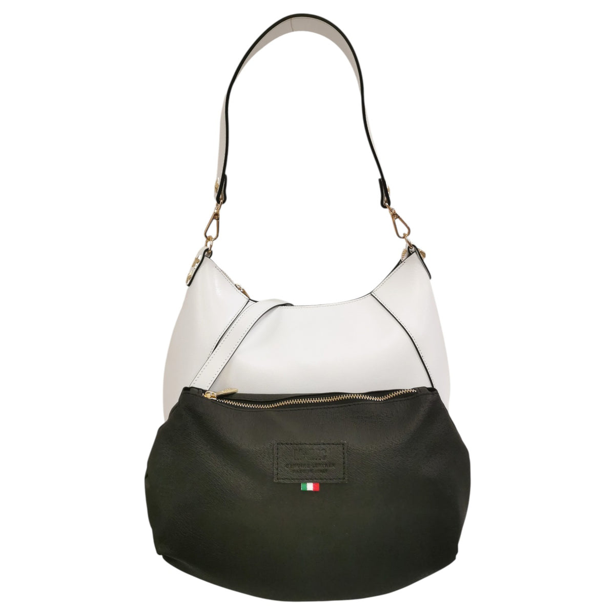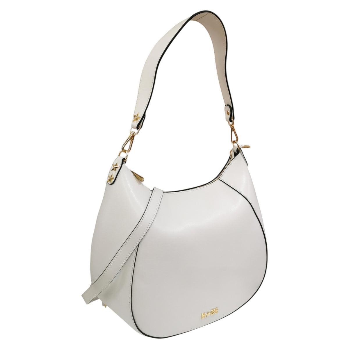 M Brc Borsa a Spalla L Donna in Pelle Bianco Linea Curvy con Tracolla