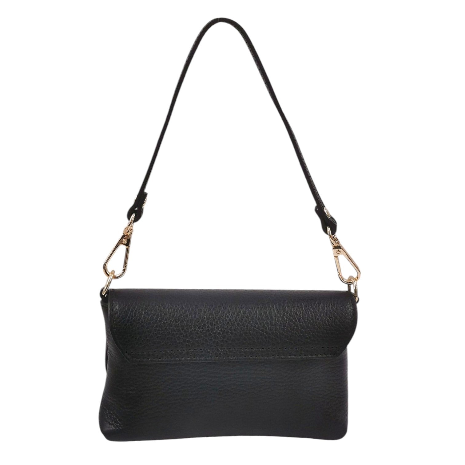 La Pochette firmata M Brc, della Linea Jolly realizzata in vera pelle martellata è caratterizzata da tracolla a catena dorata removibile e da manico pe portarla a spalla, presenta una chiusura con bottoncino, ed all'interno non presenta taschini.