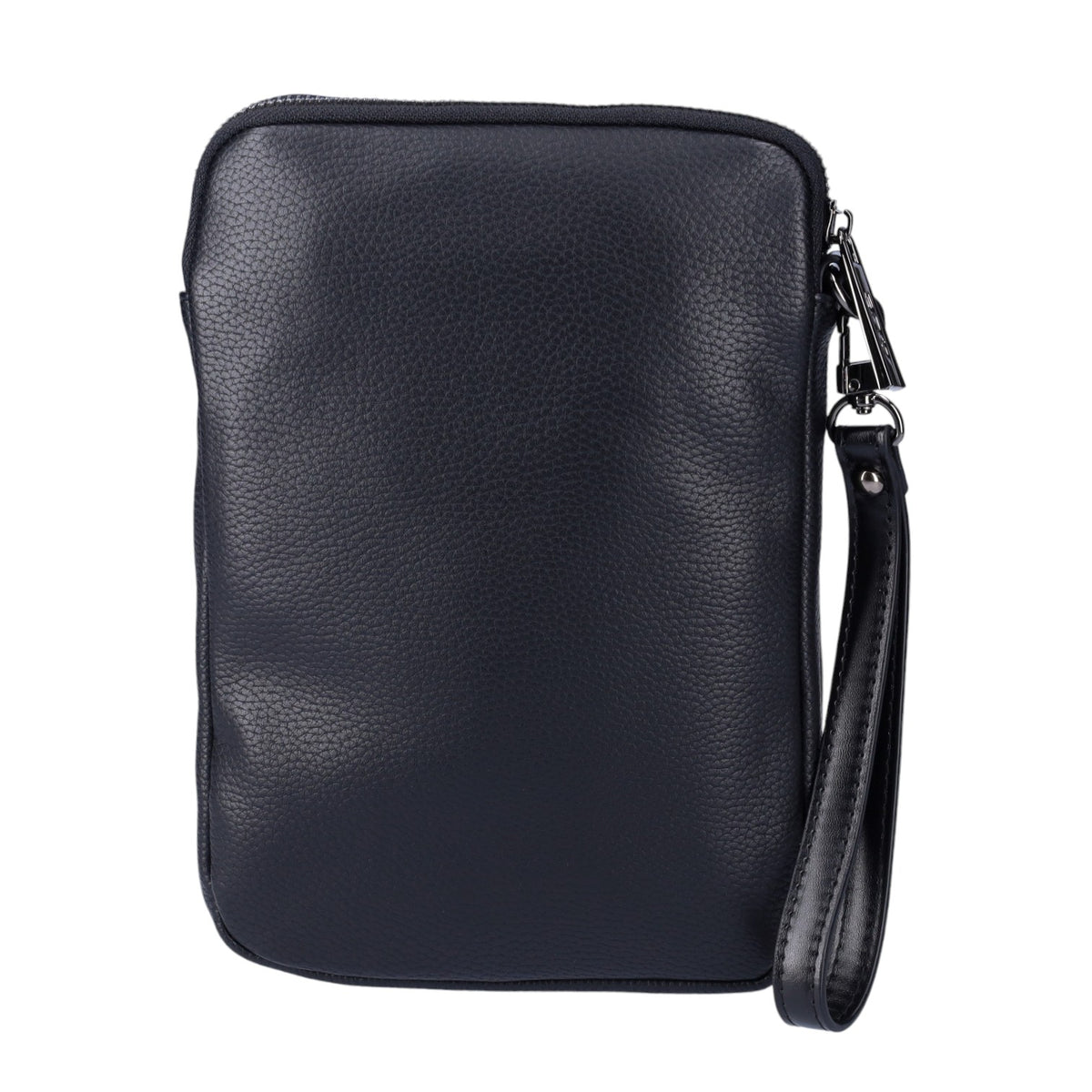 La Pochette firmata 4us by Paciotti, realizzata in ecopelle martellata è caratterizzata da tasca frontale chiusa con zip e da logo frontale in metallo argento, presenta un polsino removibile e l'interno foderato in tessuto con una tasca con zip.