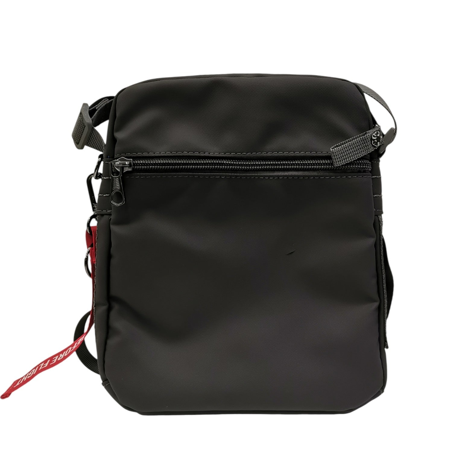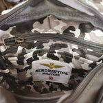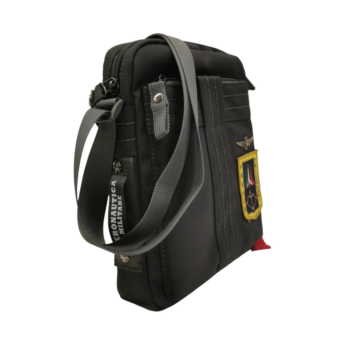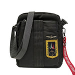 Il Borsello firmato Aeronautica Militare, realizzato in tessuto antracite è caratterizzato da tracolla regolabile e taschino con zip internamente e scomparto porta tablet o iPad. Il prodotto è caratterizzato ulteriormente dal fregio delle Frecce Tricolori e dal portachiavi rimovibile “Remove before flight”.