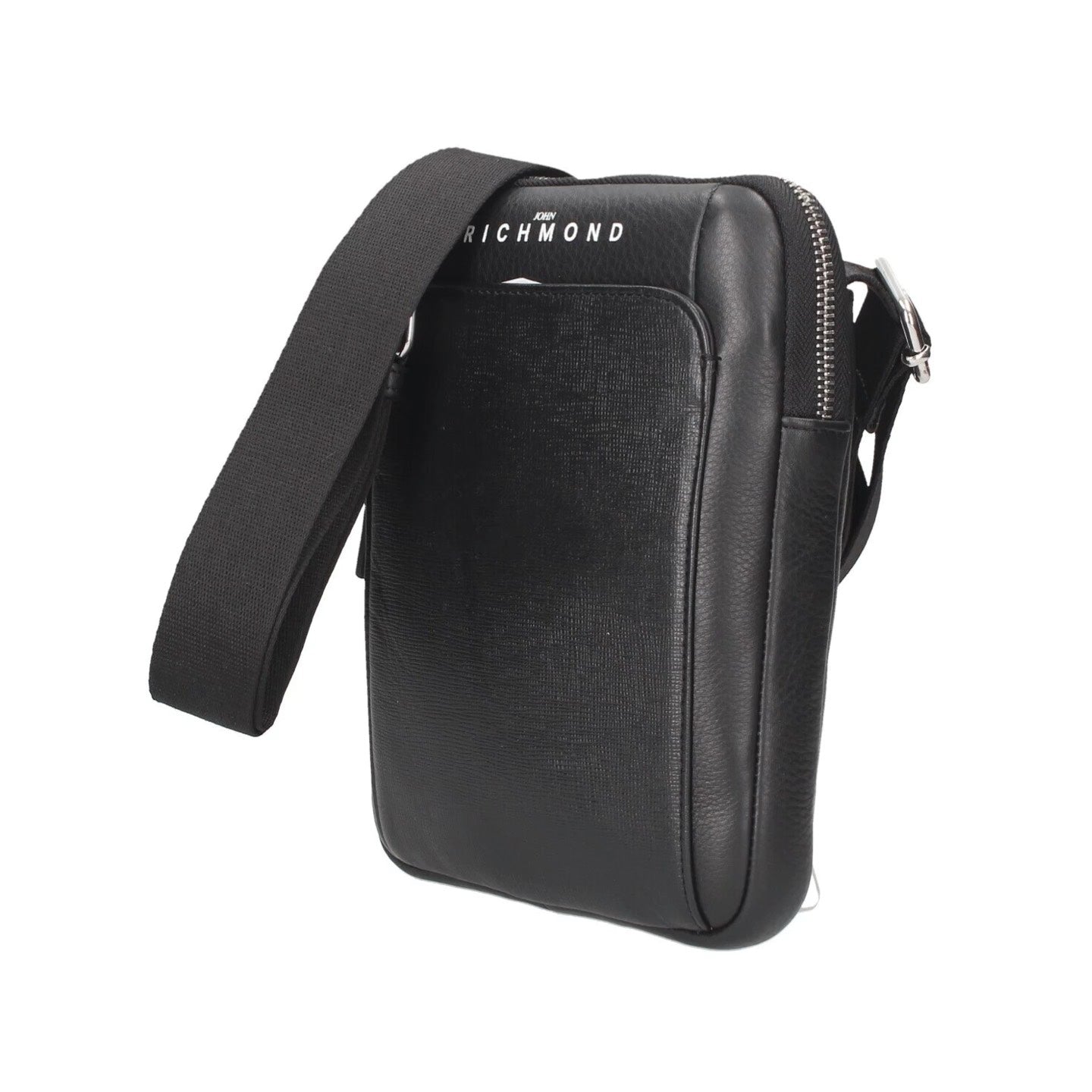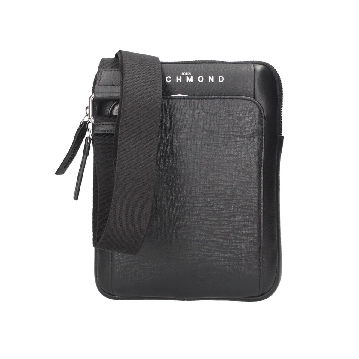John Richmond Borsello Nero in Pelle con Tracolla in Tessuto
