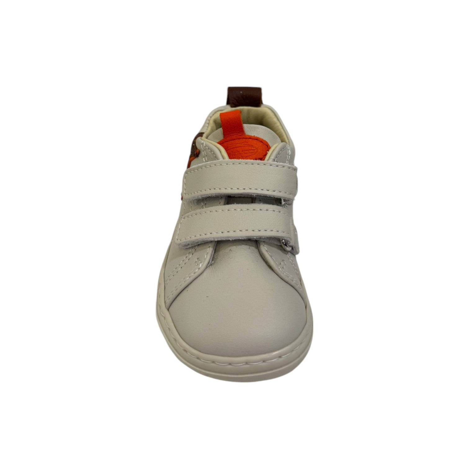La Sneakers firmata Balducci, realizzata in pelle qui proposta nella variante bianca è caratterizzata da inserti marroni e arancioni e da comoda chiusura con doppio strappo, l'interno ed il sottopiede estraibile sono foderati in pelle.