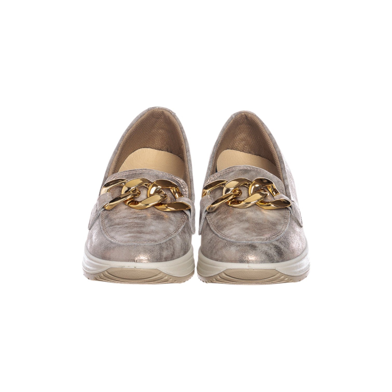 Enval Soft Mocassino Donna Tortora Laminato con Catena Oro
