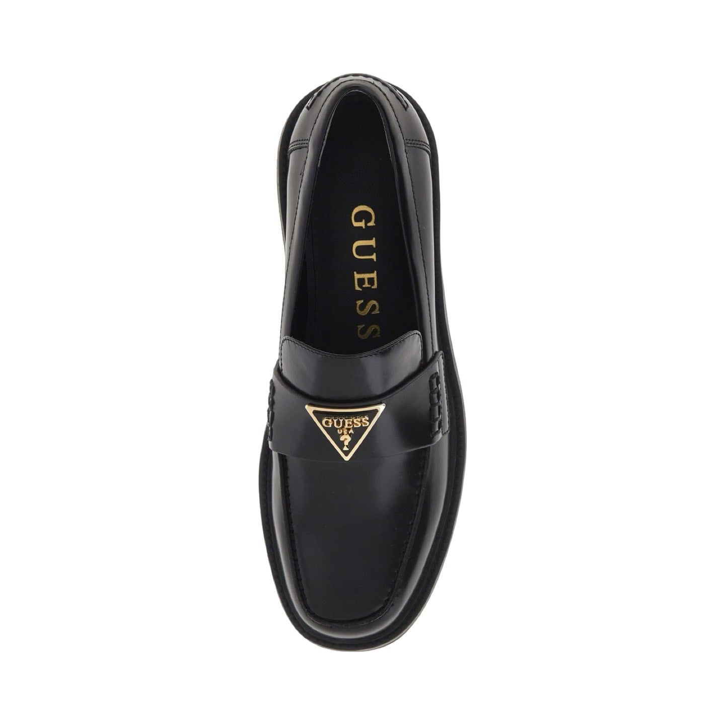 Il Mocassino firmato Guess, modello casual realizzato in pelle è caratterizzato da un dettaglio con triangolo logato sulla parte frontale e da interno foderato in tessuto con sottopiede in pelle.