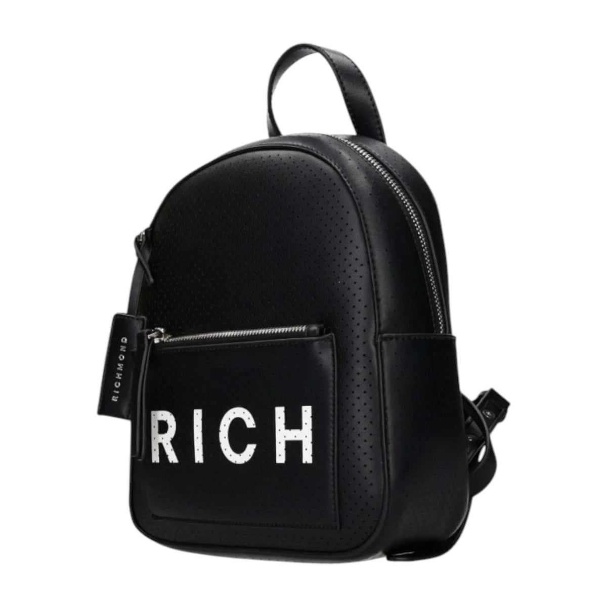 Lo Zaino firmato John Richmond, realizzato in ecopelle presenta una texture forata che gli conferisce un look moderno e distintivo, impreziosito dalla scritta “RICH” sul davanti. Dotato di una comoda maniglia superiore e spallacci regolabili, offre comfort e versatilità per l'uso quotidiano. La tasca frontale con zip e il portachiavi con logo “RICHMOND” aggiungono un tocco di funzionalità e raffinatezza.
