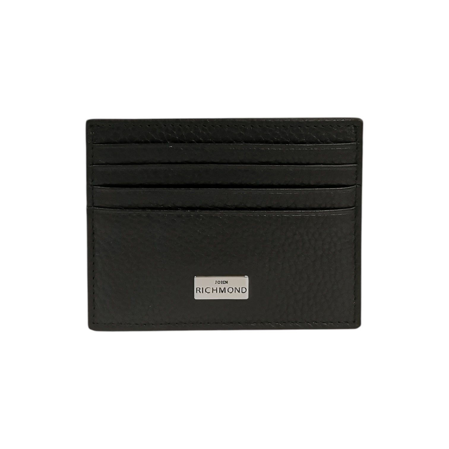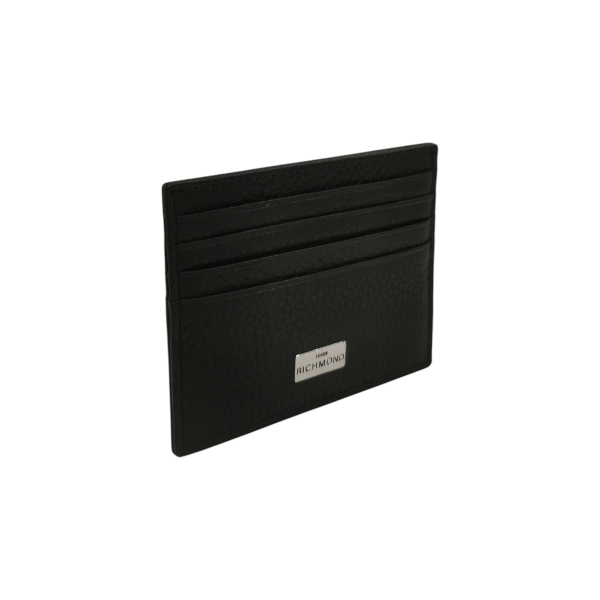 John Richmond Portacarte Uomo in Pelle Nera con Targhetta Logo Frontale