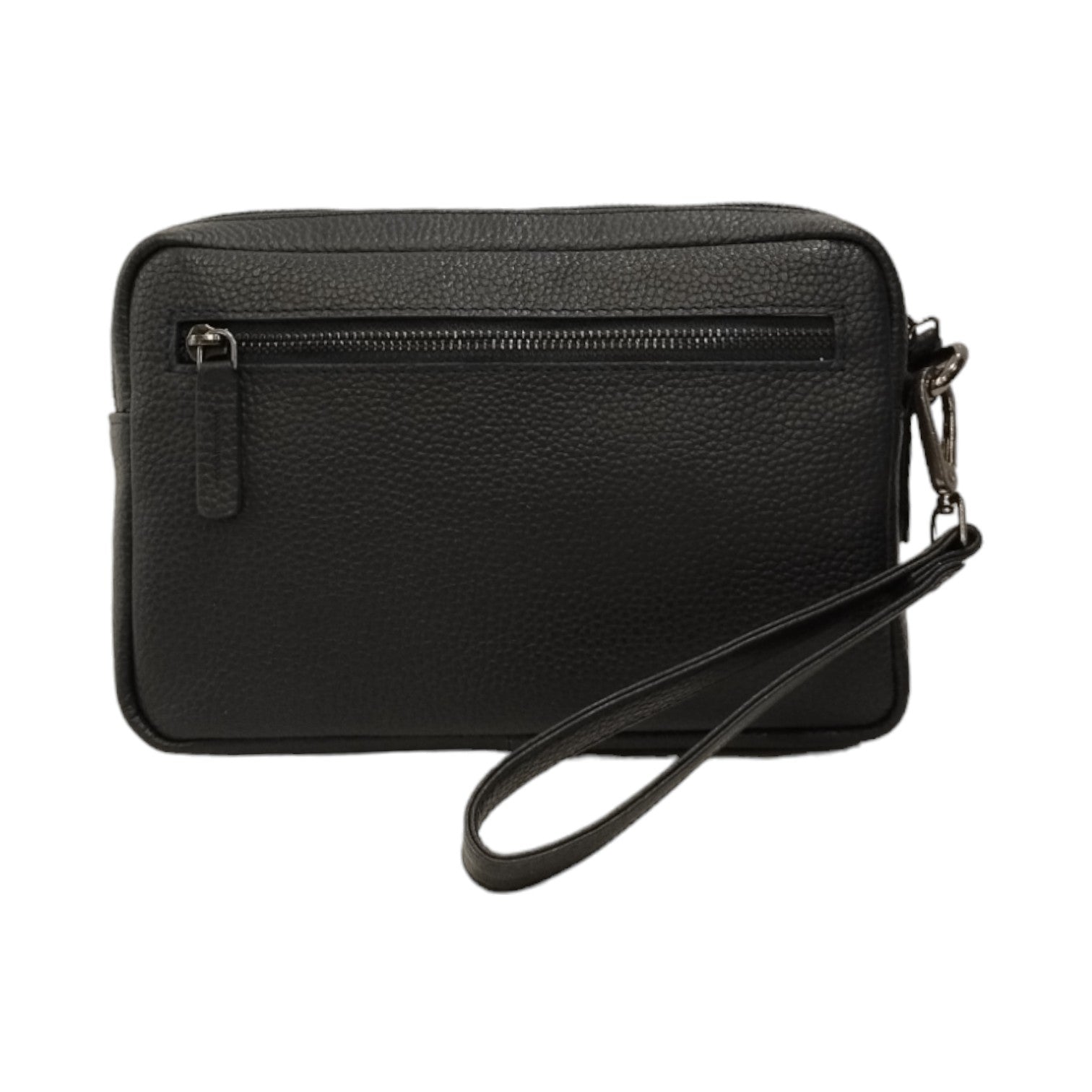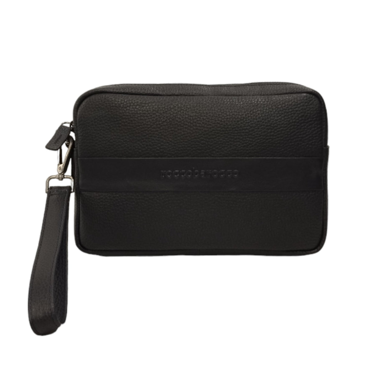 La Pochette firmata Roccobarocco, realizzata in ecopelle martellata è caratterizzata da tasca sul retro con zip e da polsino removibile, l'interno è foderato in tessuto di cui dispone di tasca con zip e una aperta per riporre gli oggetti più essenziali.