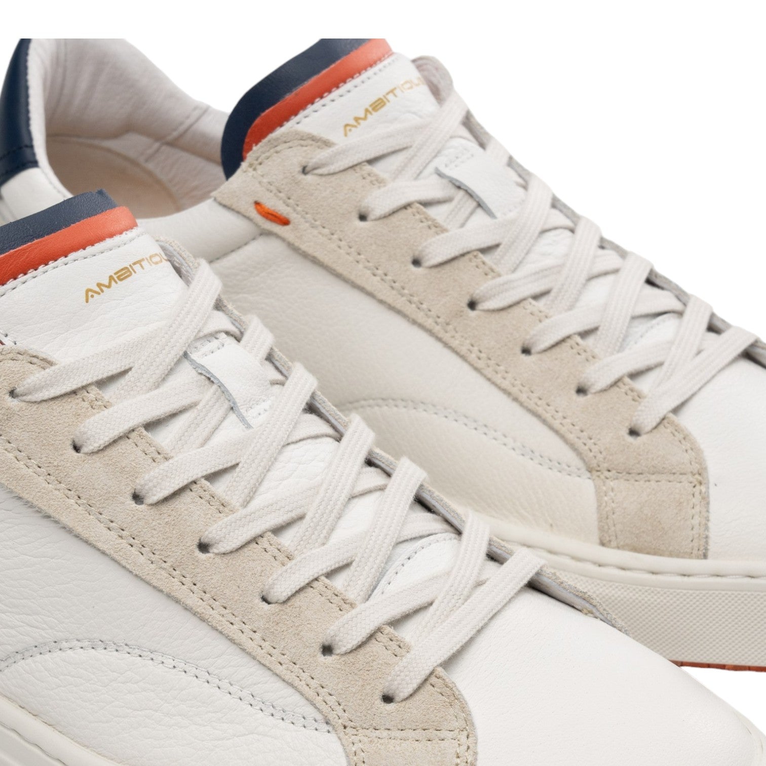 La Sneakers firmata Ambitious, presenta un design minimalista e contemporaneo che si mostra sempre elegante ai tuoi piedi. Le combinazioni di pelle fresca e i dettagli alla moda come la nuova suola leggera con base trasparente la rendono perfetta.