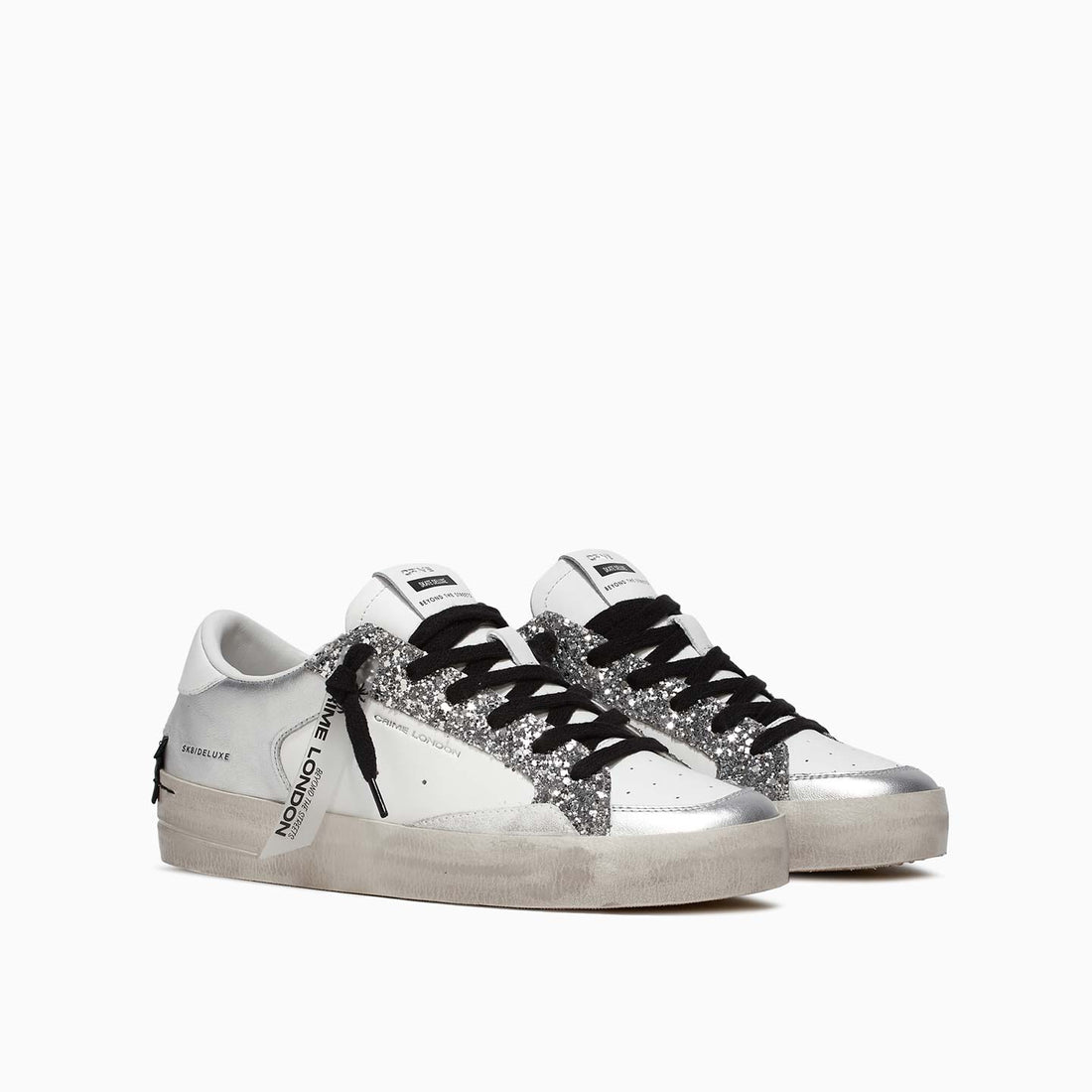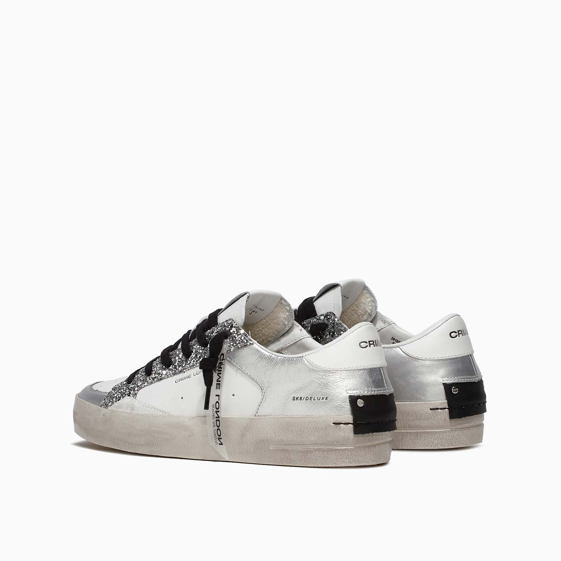 Crime London Sneakers da Donna Bianca con Dettagli Argento in Pelle