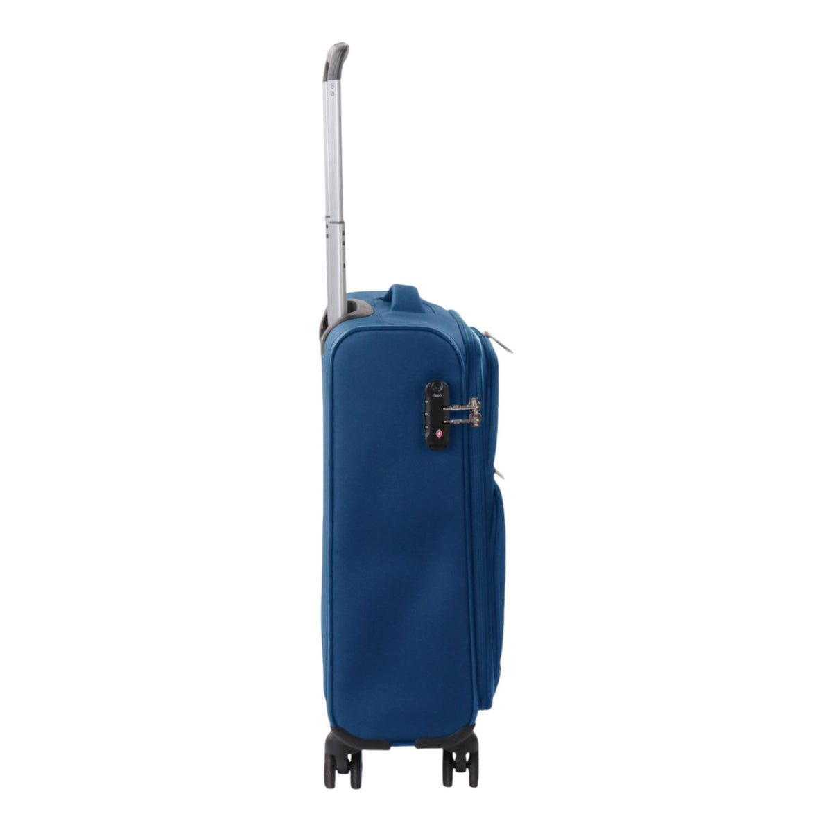 Il Trolley Piccolo firmato Modo by Roncato, della Linea Star realizzato in resistente tessuto blu, ha un'ottima organizzazione interna ed è adatto e per i viaggi lunghi. Dotato di 4 ruote abbinate, silenziose e maneggevoli. Per facilitare lo spostamento, sul pannello superiore è presente una maniglia flessibile in plastica sollevabile e una maniglia in tessuto. La sicurezza e l'incolumità dei tuoi bagagli è garantita da una serratura a combinazione integrata con sistema TSA.