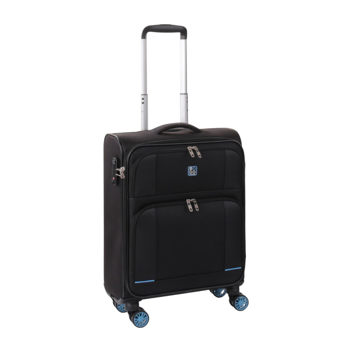 Il Trolley Piccolo firmato Modo by Roncato, della Linea Star realizzato in resistente tessuto nero, ha un'ottima organizzazione interna ed è adatto e per i viaggi lunghi. Dotato di 4 ruote abbinate, silenziose e maneggevoli. Per facilitare lo spostamento, sul pannello superiore è presente una maniglia flessibile in plastica sollevabile e una maniglia in tessuto. La sicurezza e l'incolumità dei tuoi bagagli è garantita da una serratura a combinazione integrata con sistema TSA.