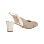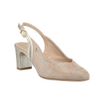 La Chanelle firmata Valleverde, realizzata in ecopelle con micro glitter è caratterizzata da inserti in vernice , modello elegante e sofisticato, con punta leggermente arrotondata, presenta un tacco moderato e cinturino regolabile intorno alla caviglia.