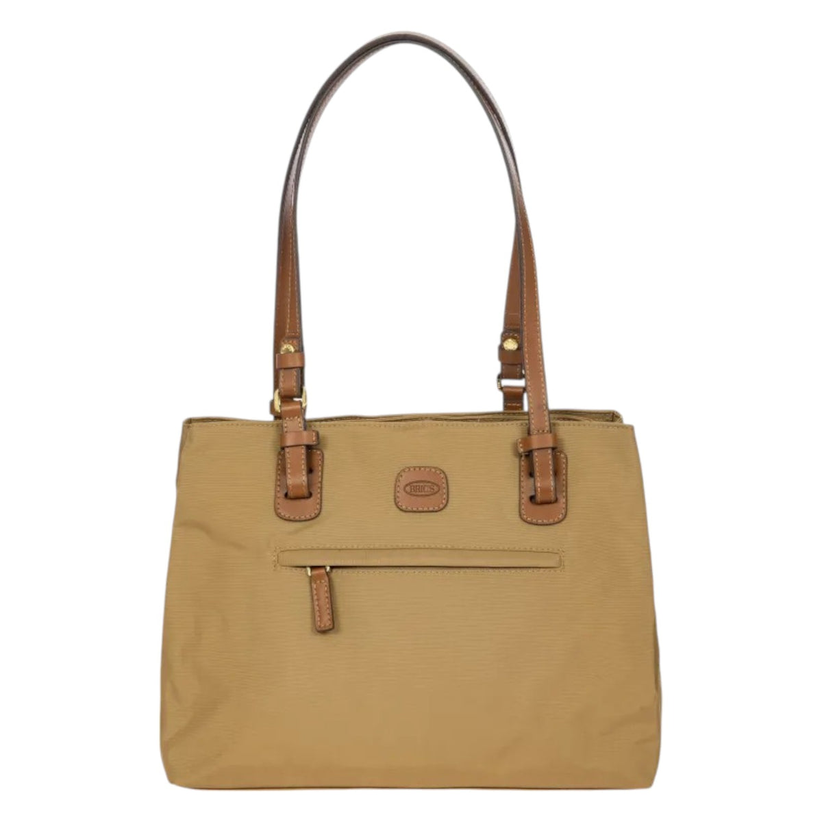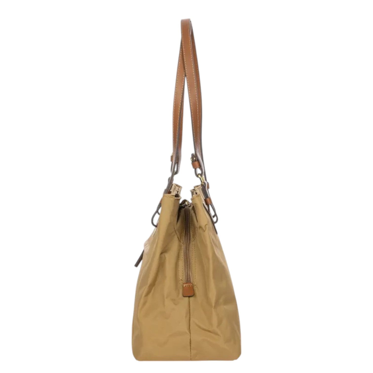 Bric's Shopper Media Donna in Tessuto Avana con Manici in Pelle