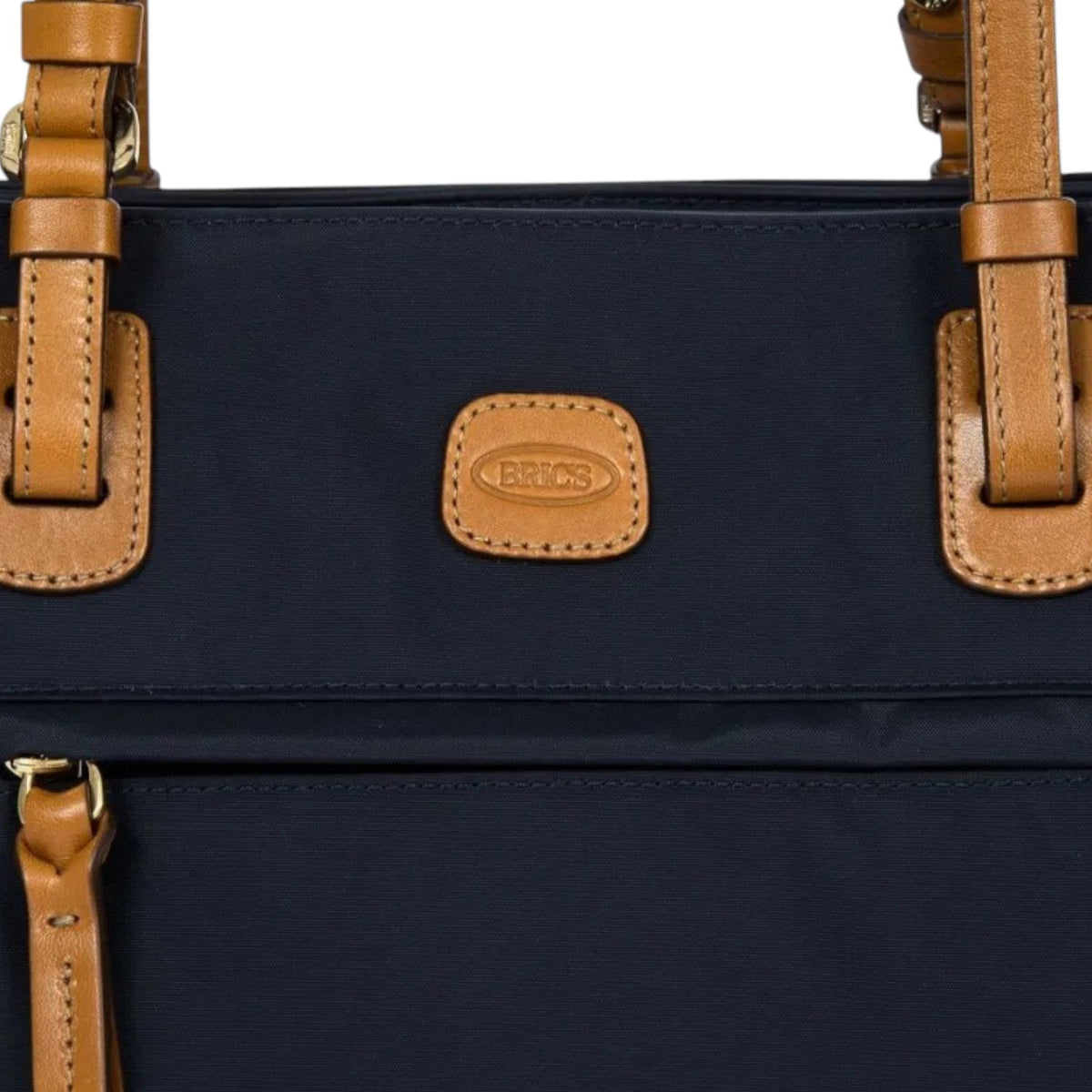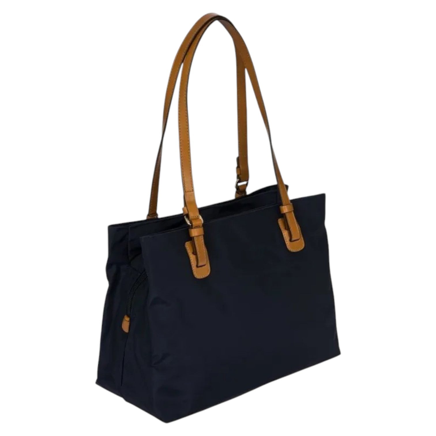 Bric's Shopper Media Donna in Tessuto Blu con Manici in Pelle