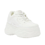 La Sneakers firmata Buffalo, realizzata in ecopelle bianca è caratterizzata da una tomaia sormontata da una spessa suola a zeppa, che assicura un comfort ineguagliabile in combinazione di interno in tessuto e il sottopiede estraibile in memory foam.