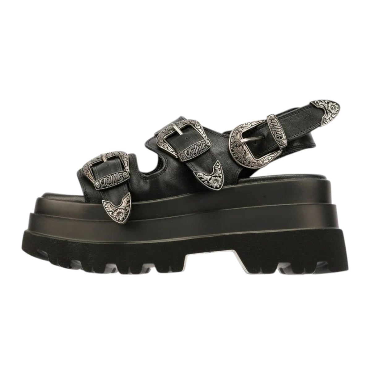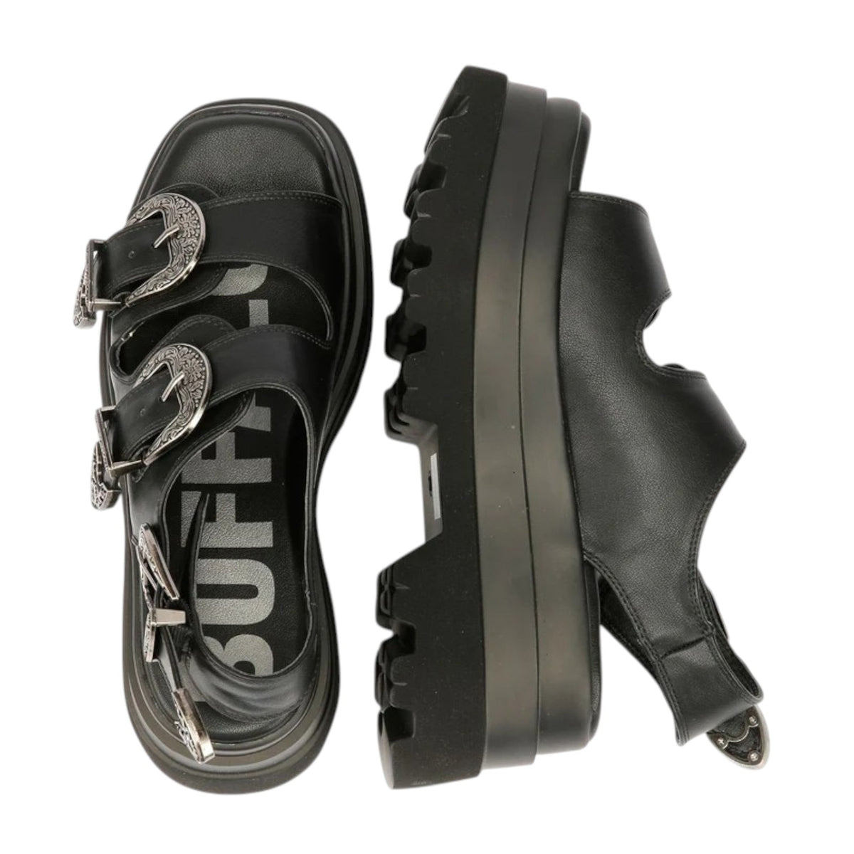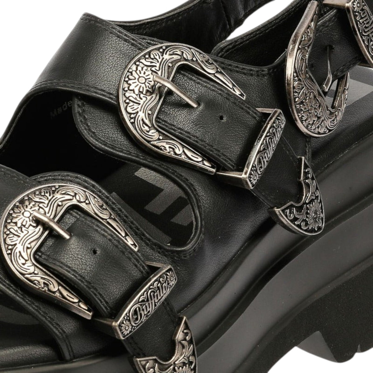 Buffalo Jupiter Ari West Sandalo Platform Nero con Fibbie da Donna
