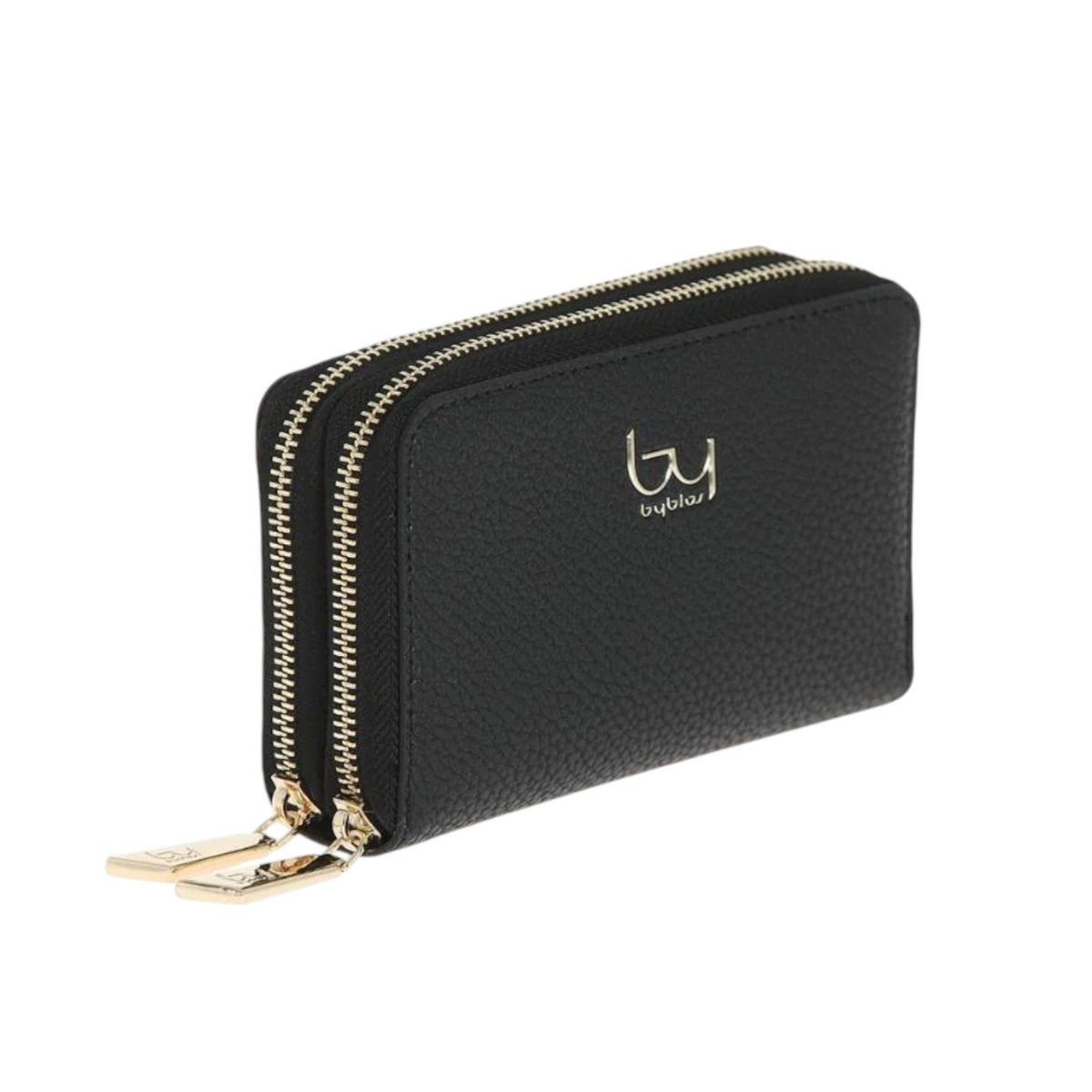 By Byblos Portafoglio Donna in Ecopelle Martellata Nera con Doppia Zip