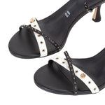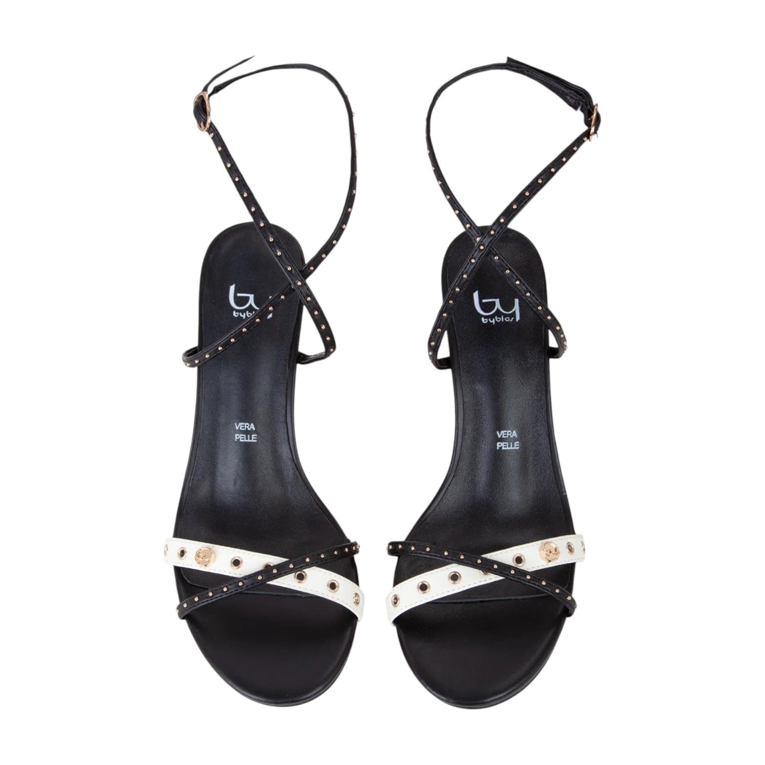 By Byblos Sandalo Donna in Ecopelle Nero Bianco con Borchiette e Tacco Sottile 80m