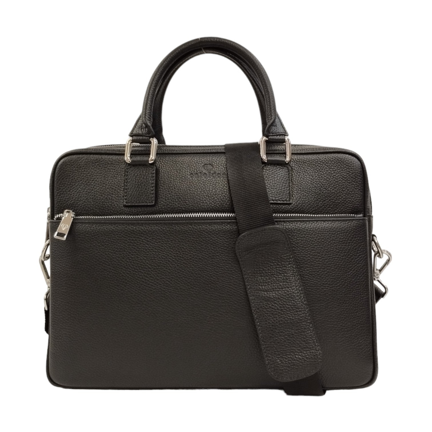 La Cartella firmata Caleidos, realizzata in pelle martellata è caratterizzata da una tasca frontale e da tracolla in tessuto regolabile e removibile, l'interno è foderato in tessuto di cui dispone di tasca con zip e da tasca porta pc.