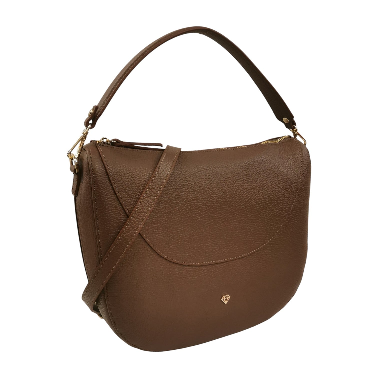 Caleidos Borsa a Spalla Donna in Pelle Castoro con Tracolla e Manico Removibile