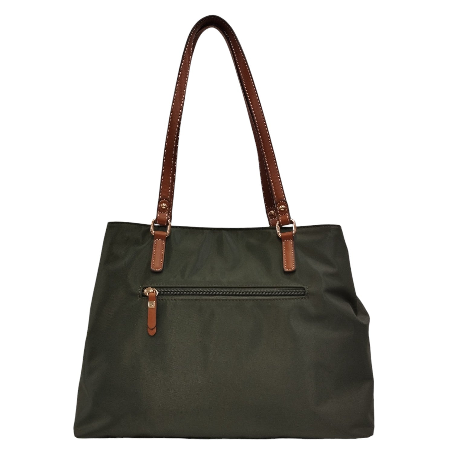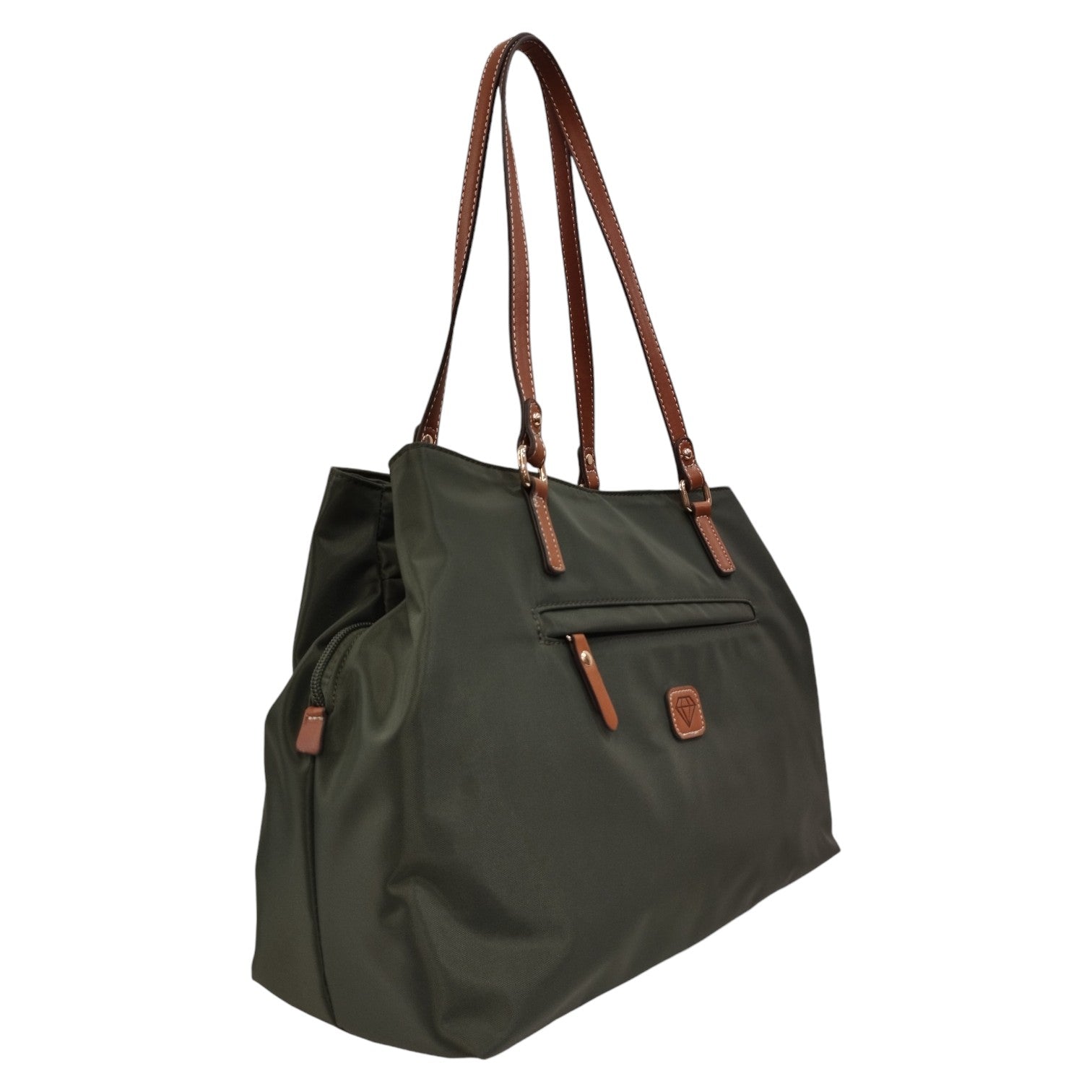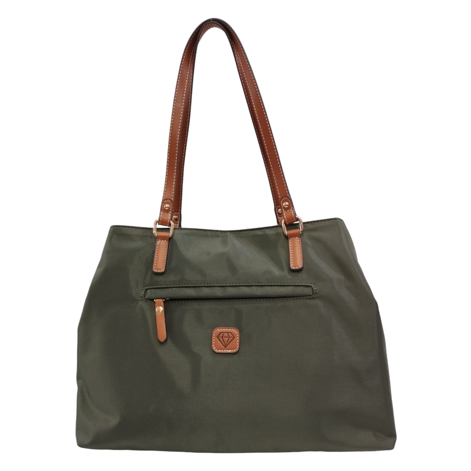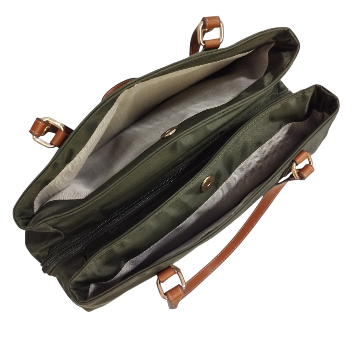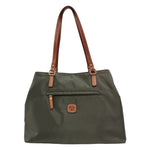 Caleidos Borsa a Spalla Donna in Tessuto Verde con Manici in Pelle