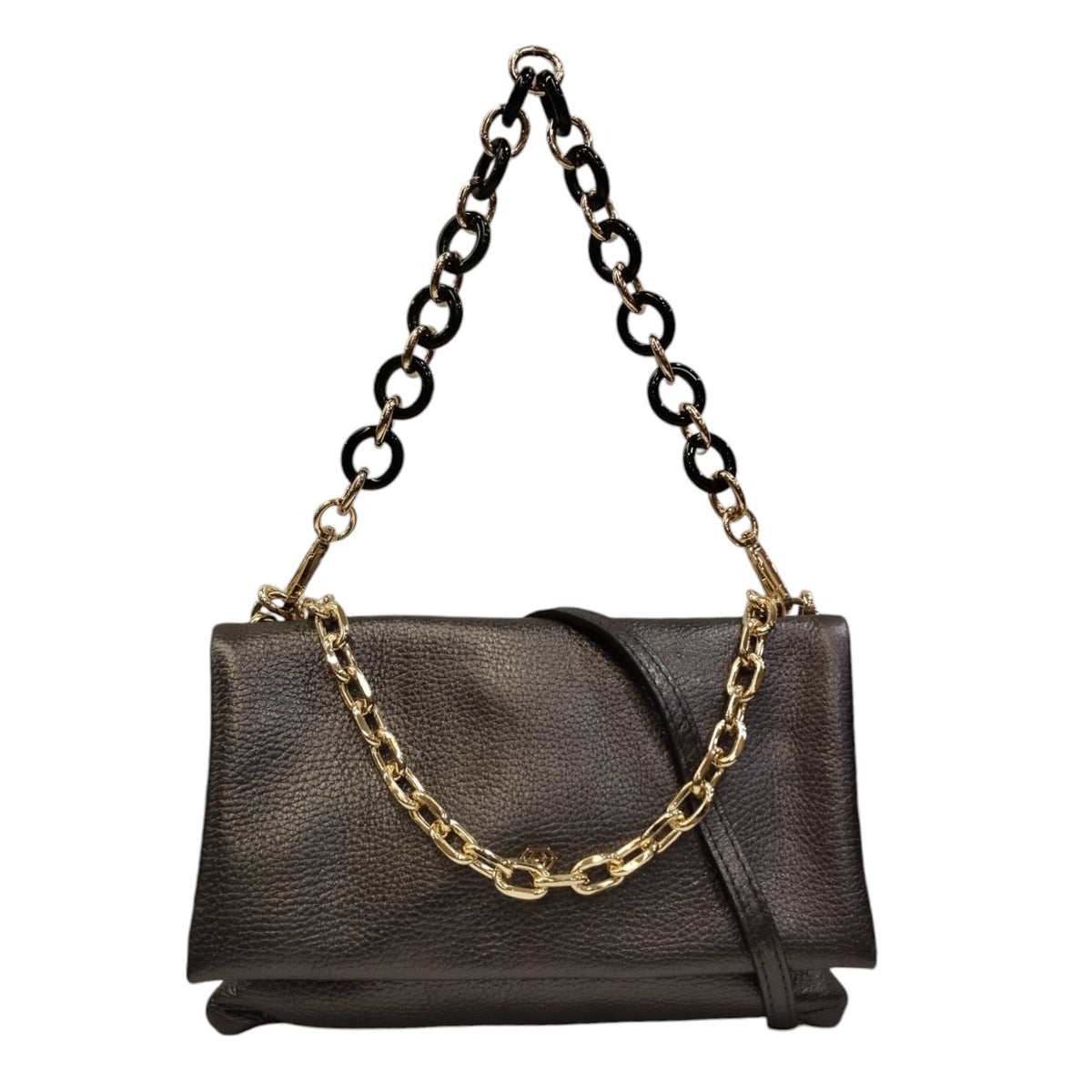 Caleidos Borsa a Tracolla Bustina Donna in Pelle Laminata Peltro con Doppia Catena