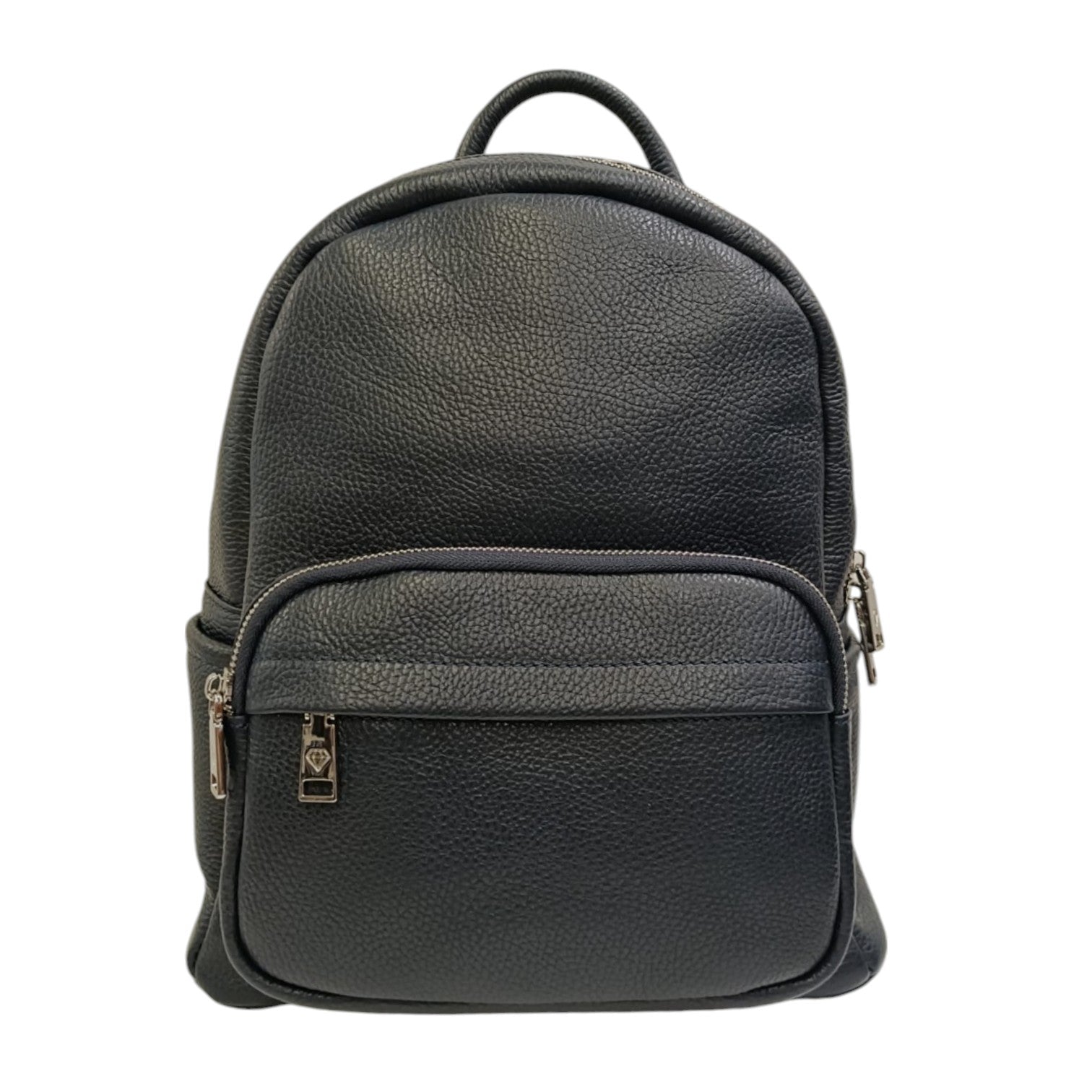 Lo Zaino firmato Caleidos, realizzato in pelle martellata è caratterizzato da tasca frontale chiusa con zip e da un unico scomparto anch'esso con zip foderato in tessuto di cui dispone di taschino con zip, inoltre presenta un manico fisso e dei spallacci regolabili.