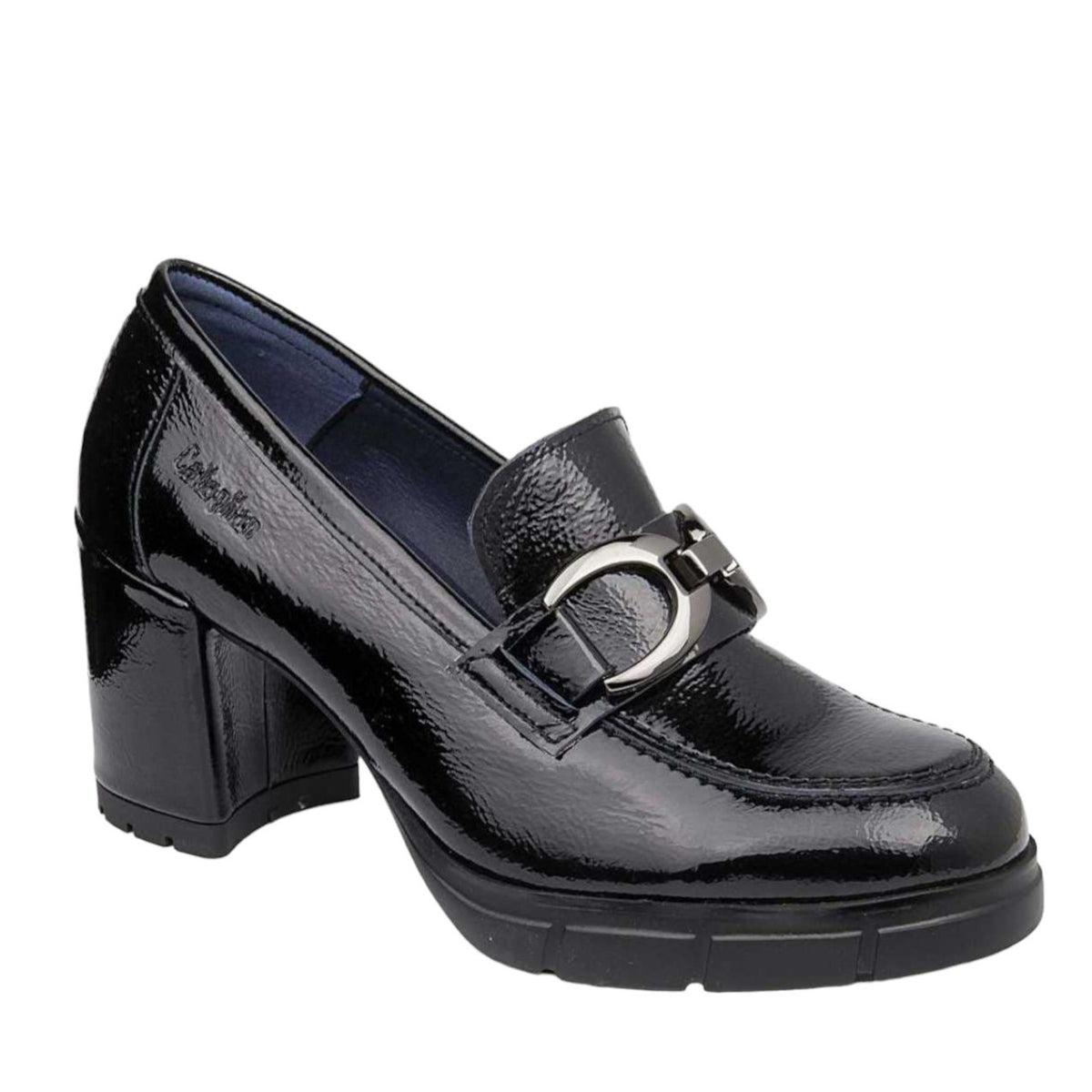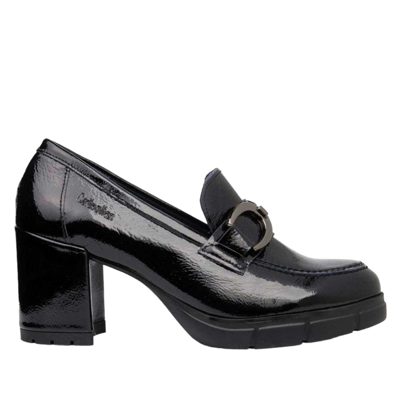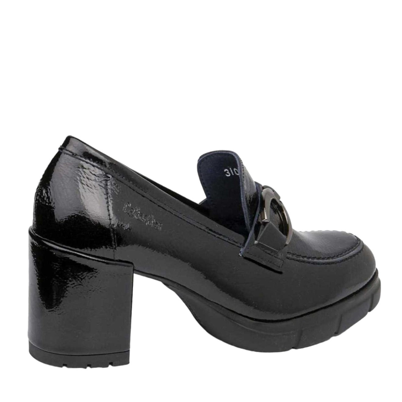 Il Mocassino firmato Callaghan, realizzato in naplak presenta un applicazione morsetto sulla parte frontale, modello ultra leggero e molto flessibile che ammortizza, è caratterizzato da comodo plateau e tacco alto 7cm.