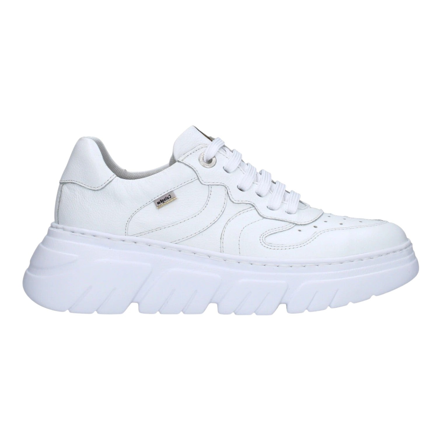 La Sneakers firmata Callaghan, realizzata in pelle bianca è caratterizzata da interno foderato in tessuto e da un morbido sottopiede estraibile in memory foam. Il fondo gomma con para alta 5cm rende questo modello comodo e di tendenza.