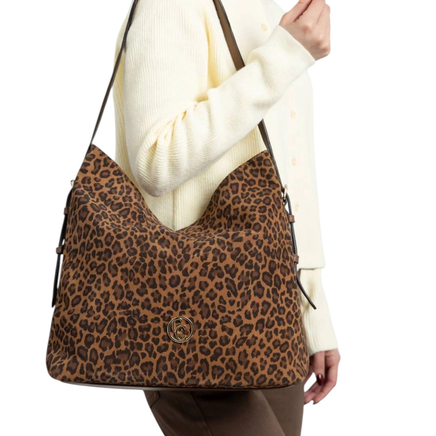 Carmela Borsa a Spalla Donna in Pelle e Camoscio Leopardata