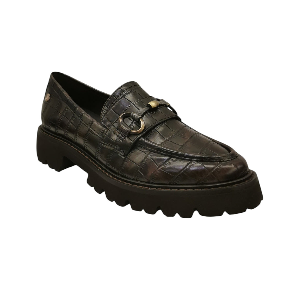 Il Mocassino firmato Carmela, realizzato in ecopelle elegante marrone, presenta il tacco a blocco spesso e la suola carrarmato aggiungono altezza e grinta, garantendo stabilità e comfort a ogni passo. Rivestiti in morbida ecopelle e rifiniti con una soletta ammortizzata, offrono una vestibilità perfetta per tutto il giorno senza rinunciare allo stile. La silhouette slip-on li rende facili da indossare, mentre la finitura coccodrillo testurizzata aggiunge un tocco di lusso a qualsiasi look.