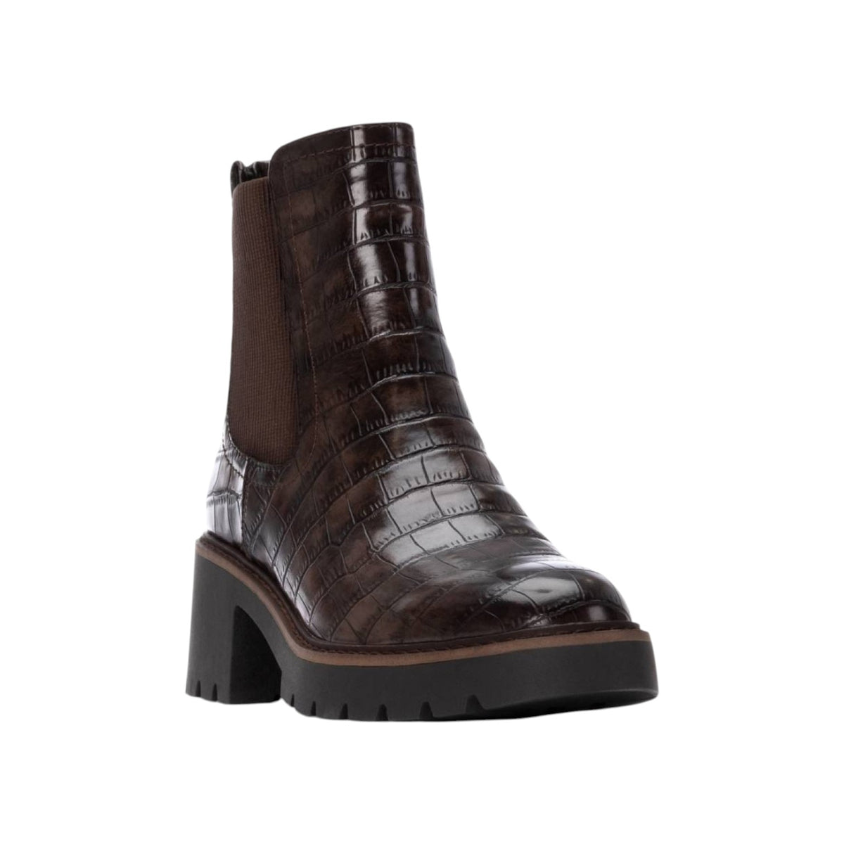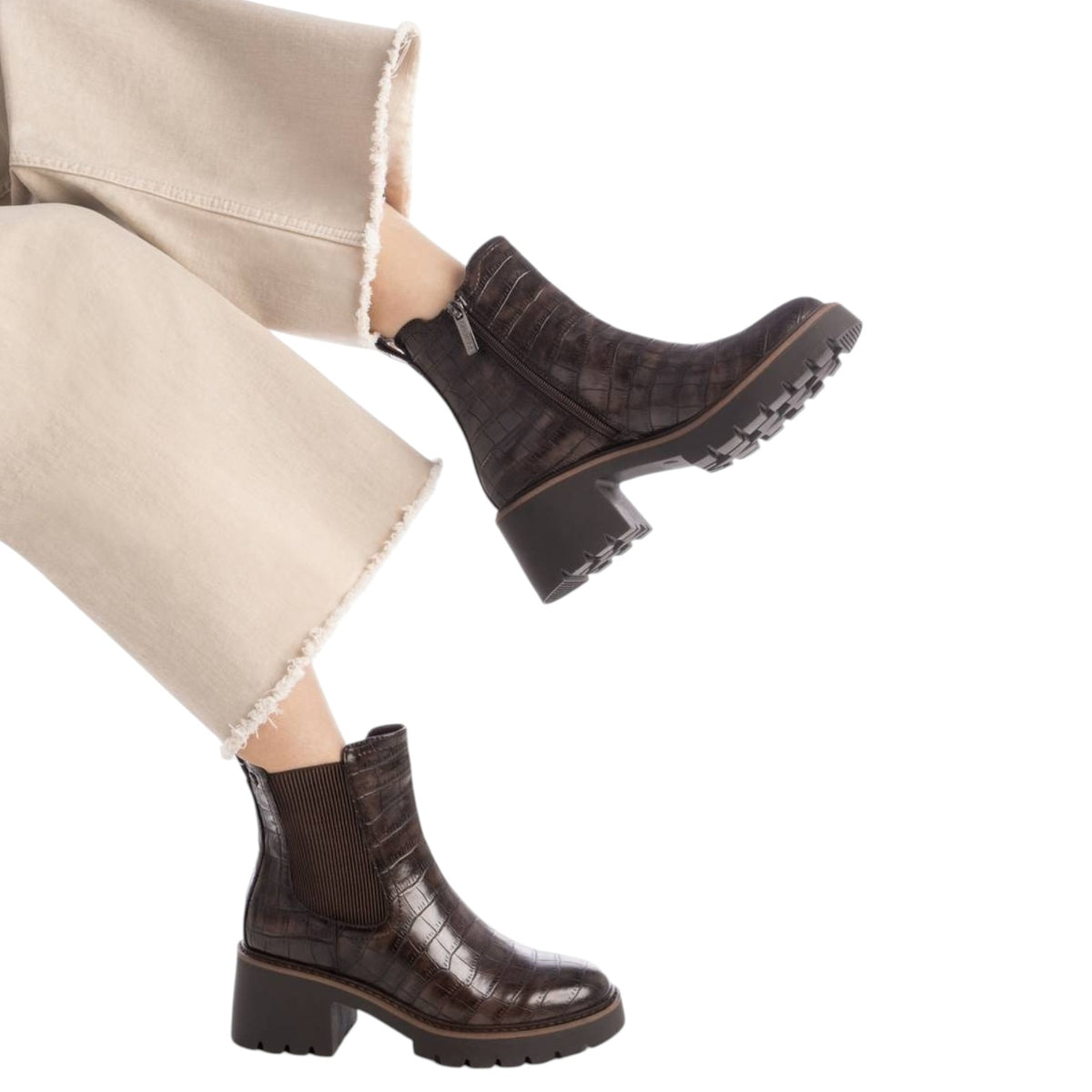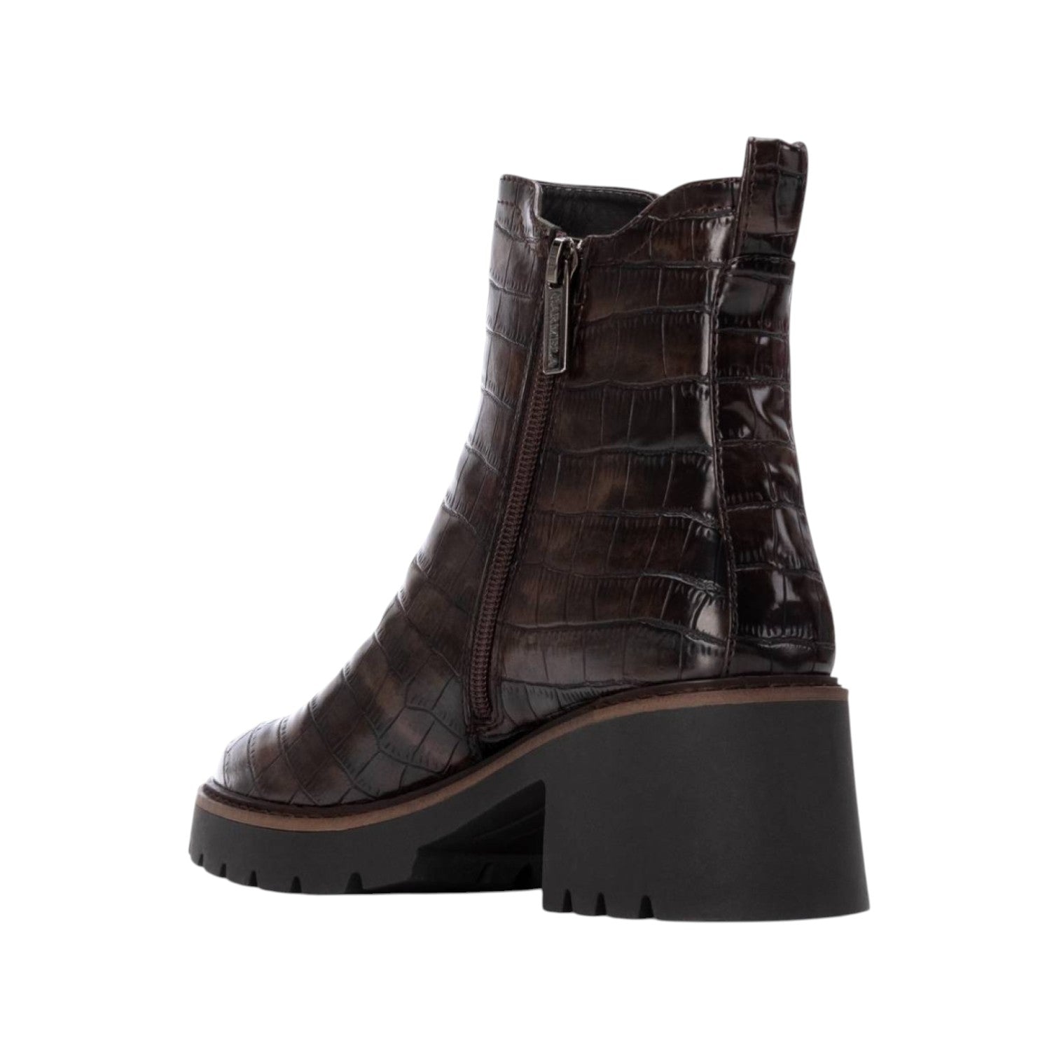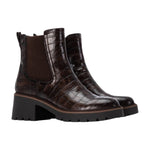 Lo Stivaletto firmato Carmela, con un design sofisticato in marrone con un elegante rilievo coccodrillo che aggiunge un tocco di esclusività al tuo look. La sua robusta suola carro armato non solo offre una presa eccezionale, ma eleva anche il tuo stile con un'estetica moderna e audace. Perfetto per abbinarsi a outfit casual o più formali, questo stivaletto garantisce comfort e durata per l'uso quotidiano.