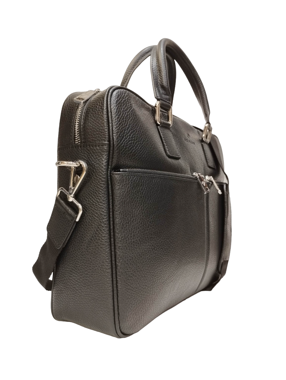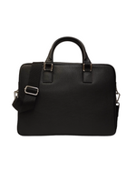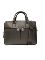 La Cartella firmata Caleidos, realizzata in pelle martellata è caratterizzata da doppia tasca frontale e da tracolla in tessuto regolabile e removibile, l'interno è foderato in tessuto di cui dispone di tasca con zip e da tasca porta pc.