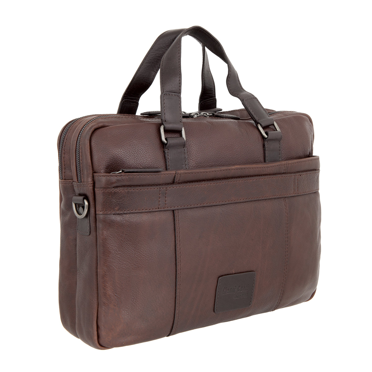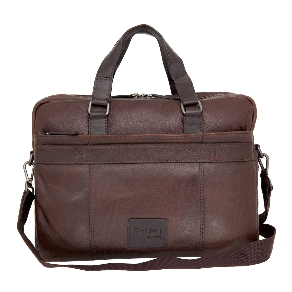 Gianni Conti Borsa da Lavoro Uomo in Pelle Marrone con Tracolla in Tessuto