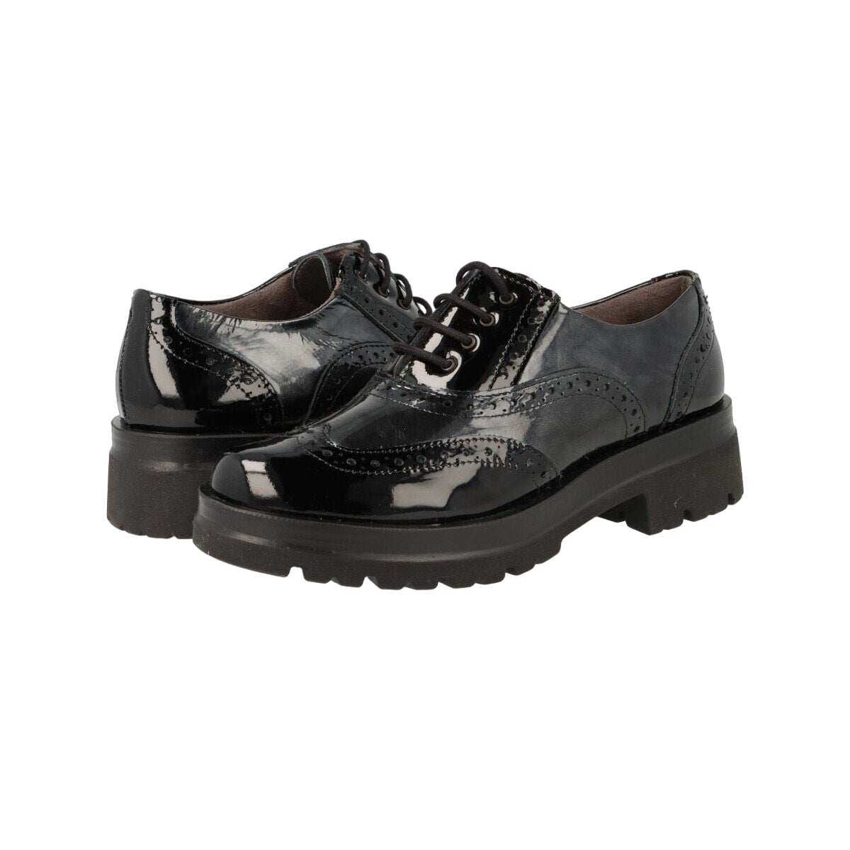 Pitillos Allacciato Donna in Naplak Nero Grigio Stile Inglese