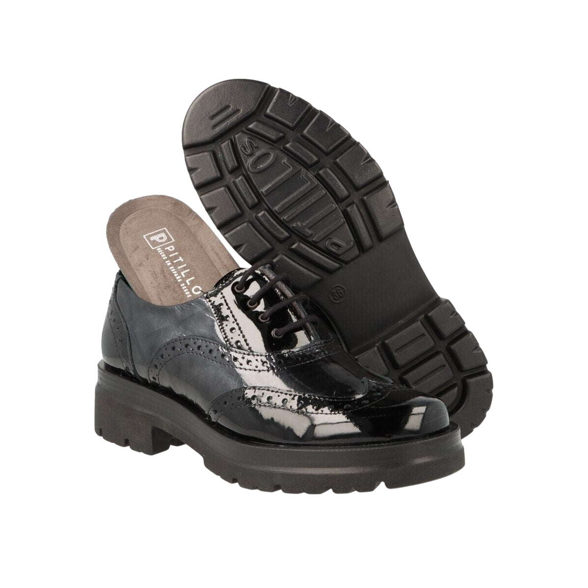 L'Allacciato firmato Pitillos, stile inglese realizzato in naplak è caratterizzato da plantare imbottito in pelle estraibile e da una chiusura con lacci. Adatto ad un outfit elegante e casual grazie al loro stile inconfondibile.