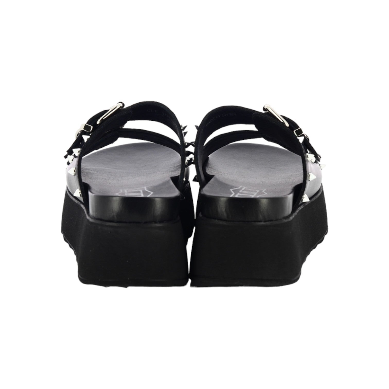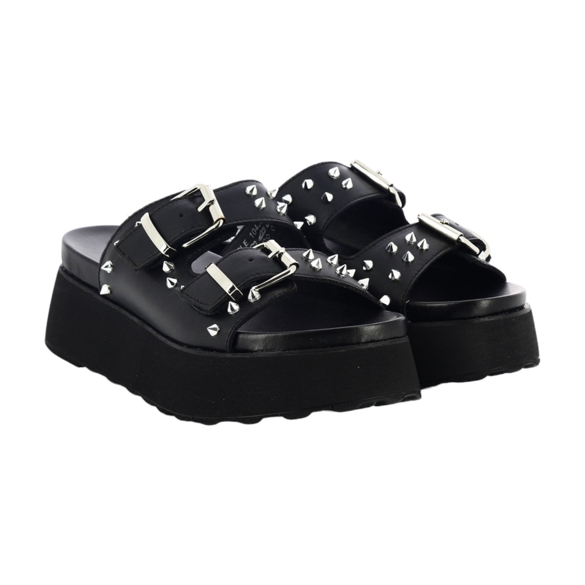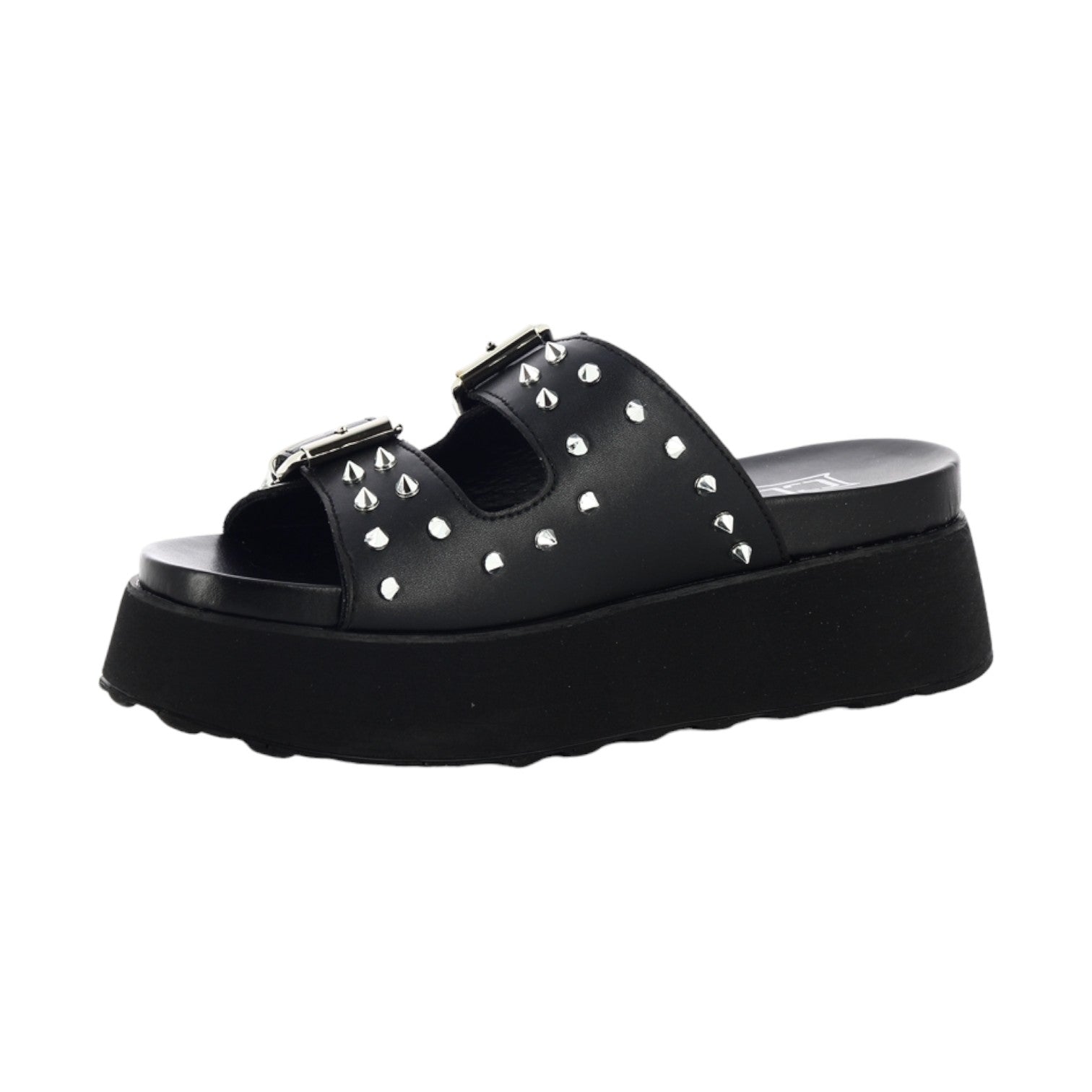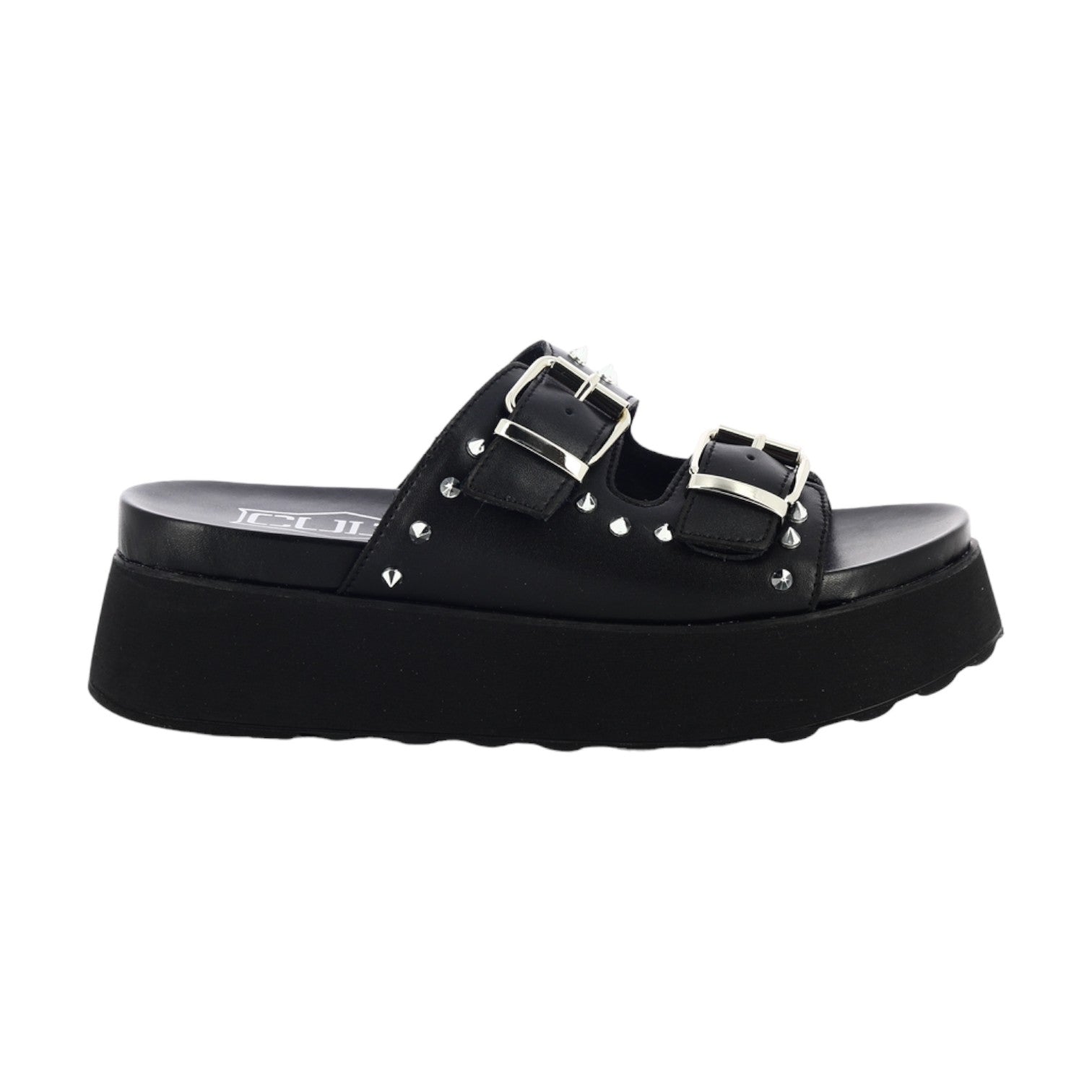 Cult Ciabatta Platform Nera con Doppia Fibbia Regolabile e Borchie