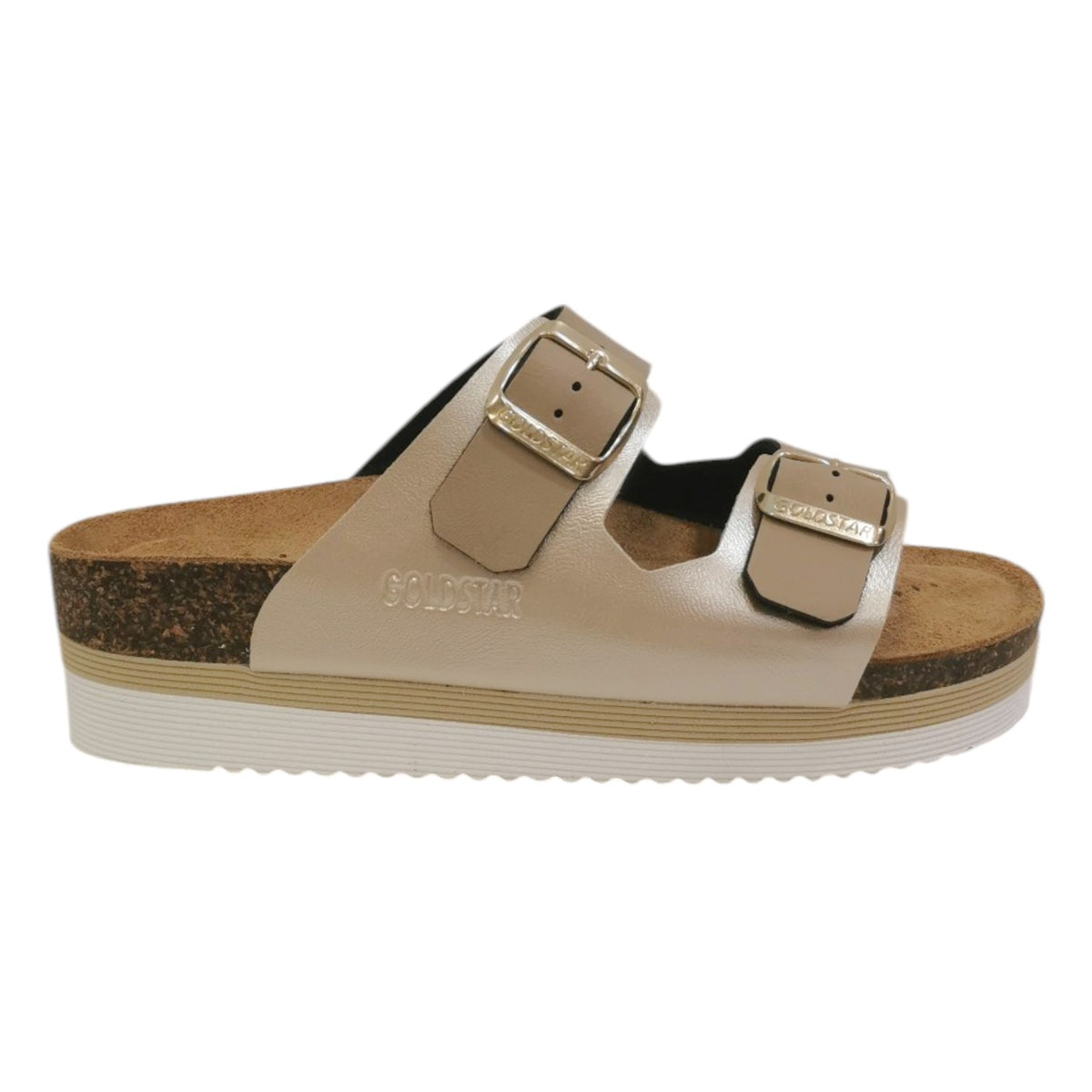 GoldStar Ciabatta Platino Platform con Doppia Fibbia da Donna