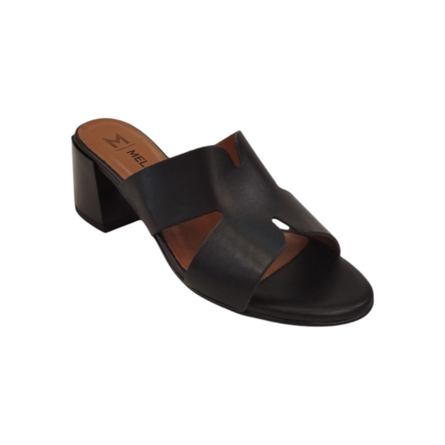 Melluso Scalzato Donna in Pelle Nera con Tacco Largo 60mm