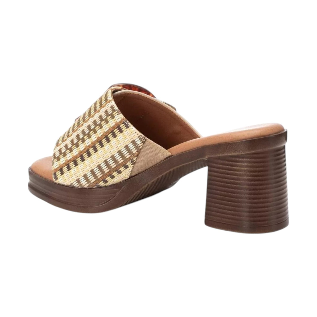 Lo Scalzato firmato Refresh, realizzato in ecopelle, la caratteristica principale è la maxi fibbia non regolabile ma fissa, che non solo aggiunge un tocco di originalità e modernità, ma funge anche da elemento di supporto, assicurando una vestibilità comoda e sicura. Il sottopiede imbottito offre comfort prolungato, mentre il tacco effetto legno dona eleganza e stabilità.