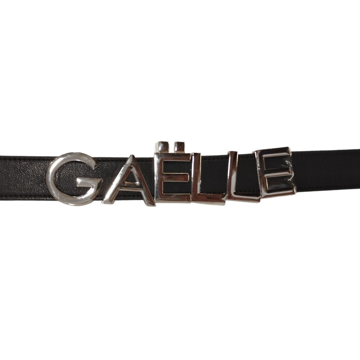Gaelle Cintura Donna in Ecopelle Argento Nero con Scritta Logo