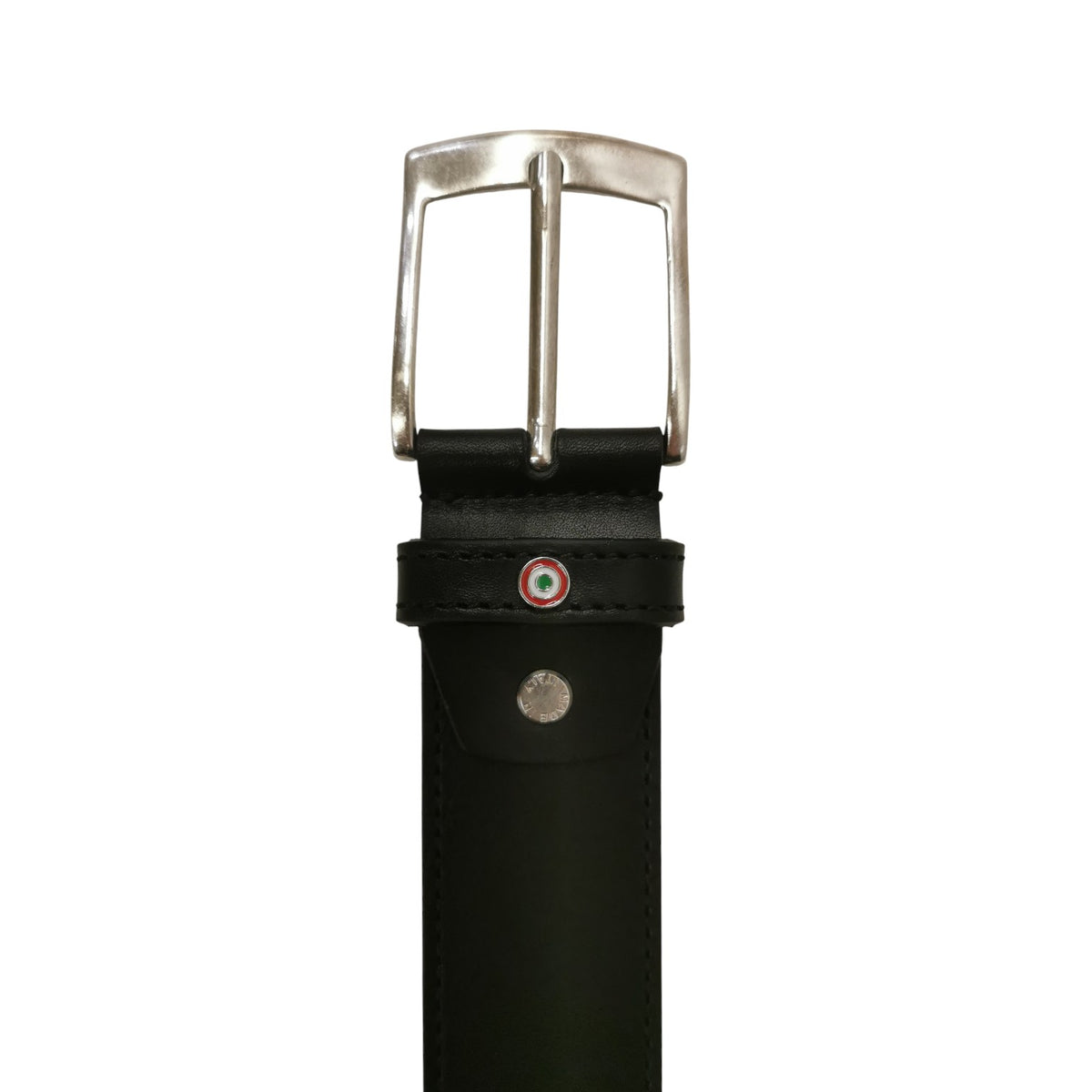 La Cintura firmata Aeronautica Militare, realizzata in pelle con dettagli di impunture perimetrali, dotata di fibbia metallica regolabile in lunghezza tramite vite. Il passante è arricchito dal logo tricolore metallico applicato, mentre sul fondo spicca la scritta Aeronautica Militare impressa a caldo, per un design elegante e distintivo.