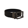 La Cintura firmata John Richmond, realizzata in pelle è reversibile nera e blu presenta una fibbia metallica in acciaio rettangolare con logo inciso.