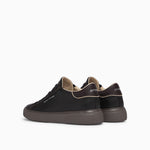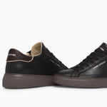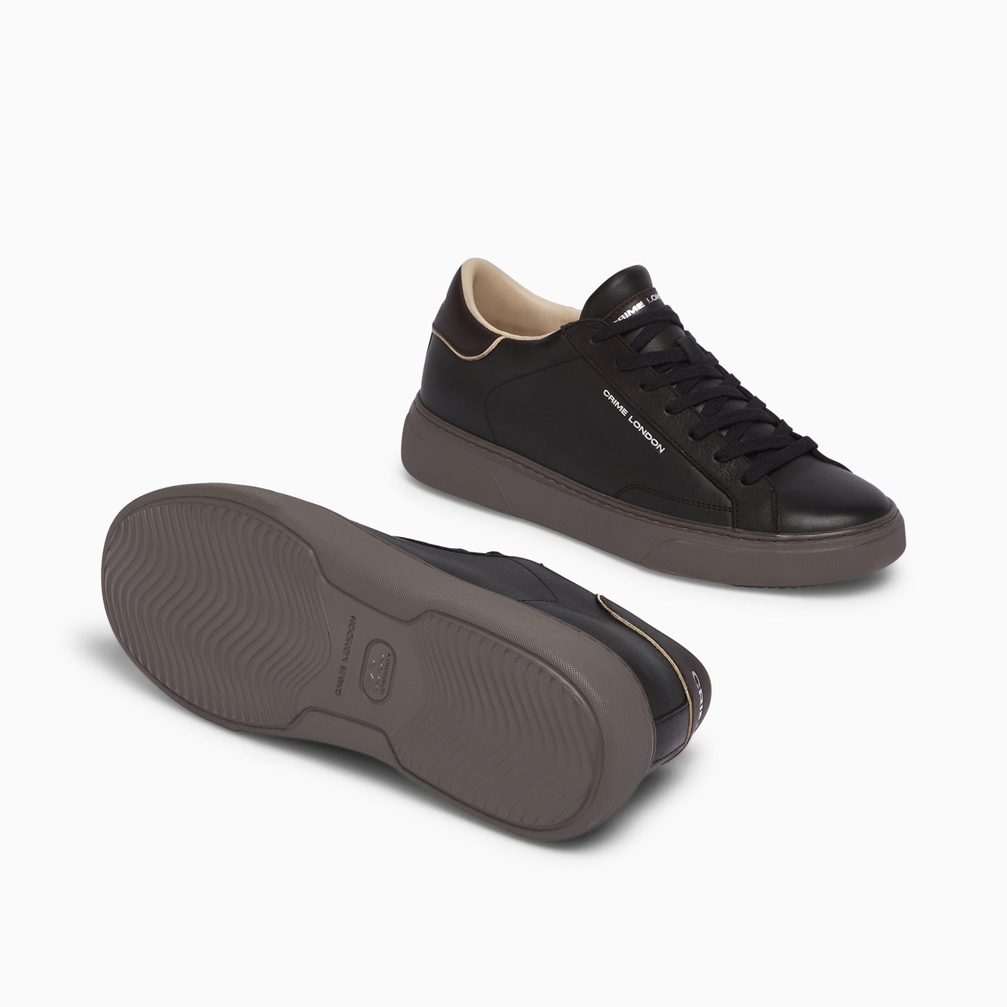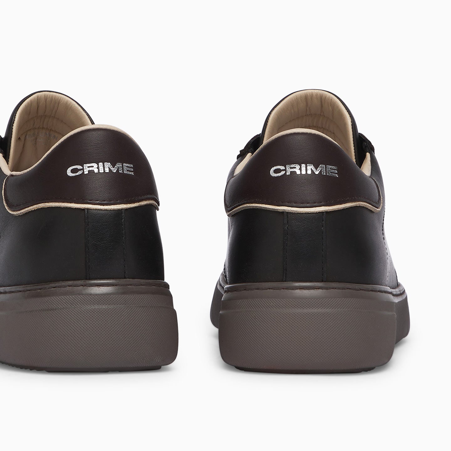 La Sneaker firmata Crime London, realizzata in pelle spazzolata nera con tallone marrone, dispone di linguetta con label marrone in pelle logata e una fodera beige in pelle e tessuto. Suola extralight® antracite con texture diamond.