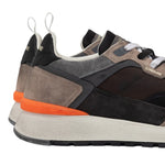 La Sneakers firmata Crime London, realizzata con tomaia in pelle scamosciata marrone chiaro, dettagli in tessuto marrone è caratterizzata da stabilizzatore in gomma arancione fluo e da linguetta in pelle nera con etichetta in pelle con logo. Inoltre, dispone di doppio pizzo bianco e nero, con suola in gomma marshmallow, fondo nero.