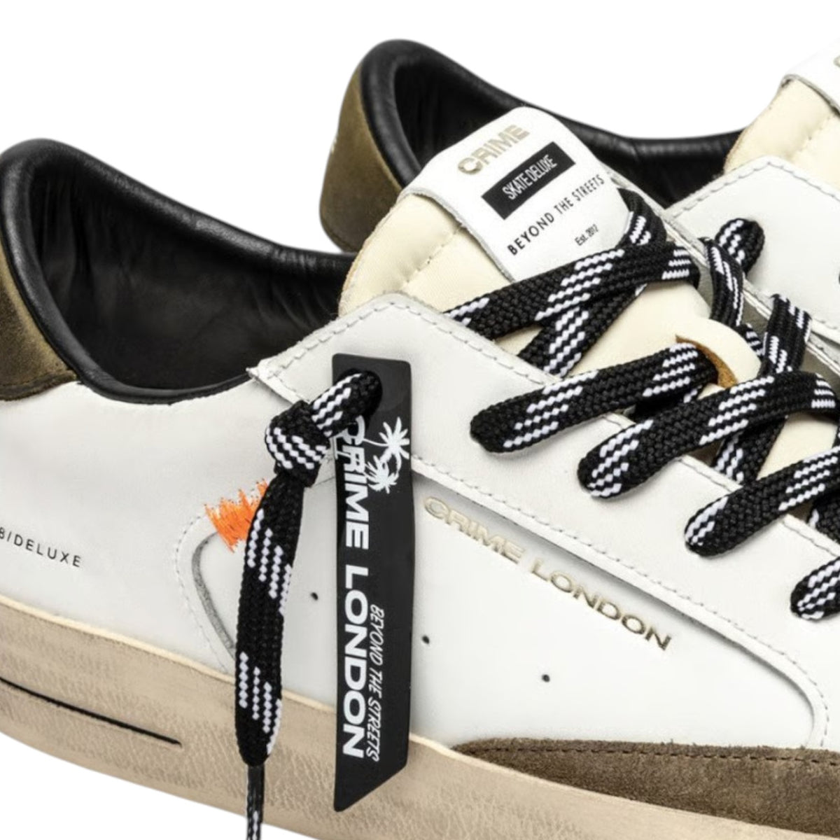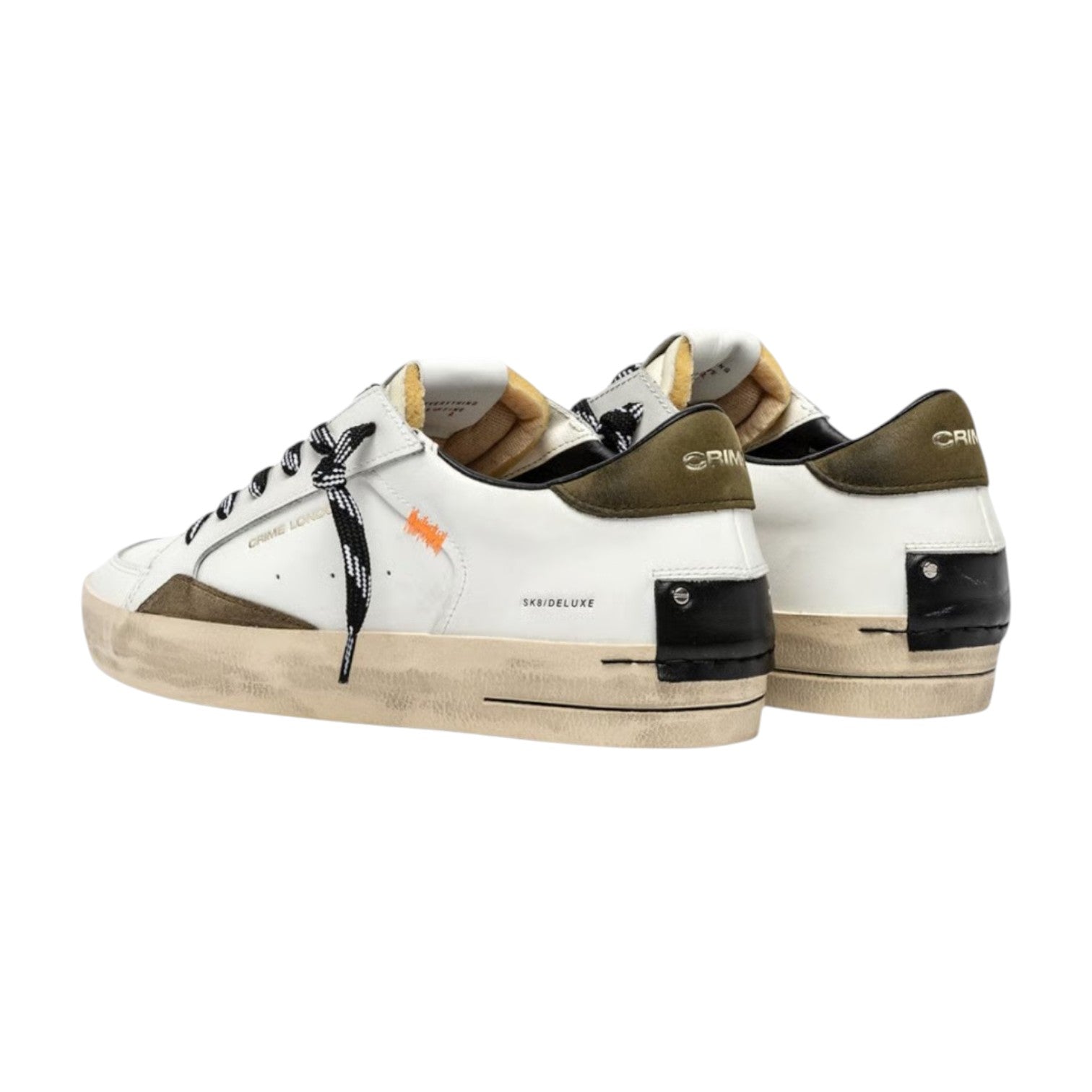Crime London Sneakers Uomo in Pelle Bianca Sk8 Deluxe Olive Ember