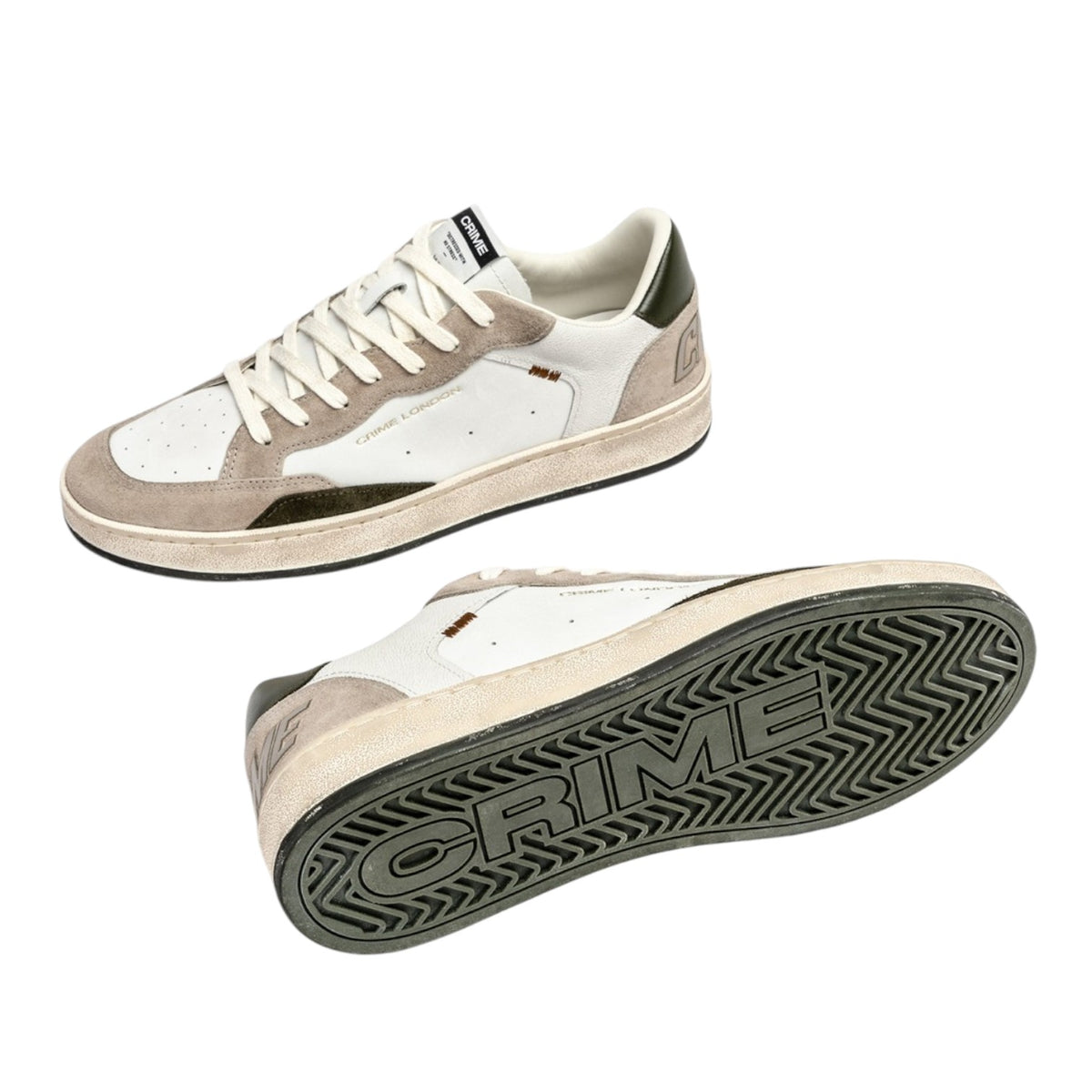 Crime London Sneakers Uomo in Pelle e Camoscio Bianca Verde Chelsea Dune Draft