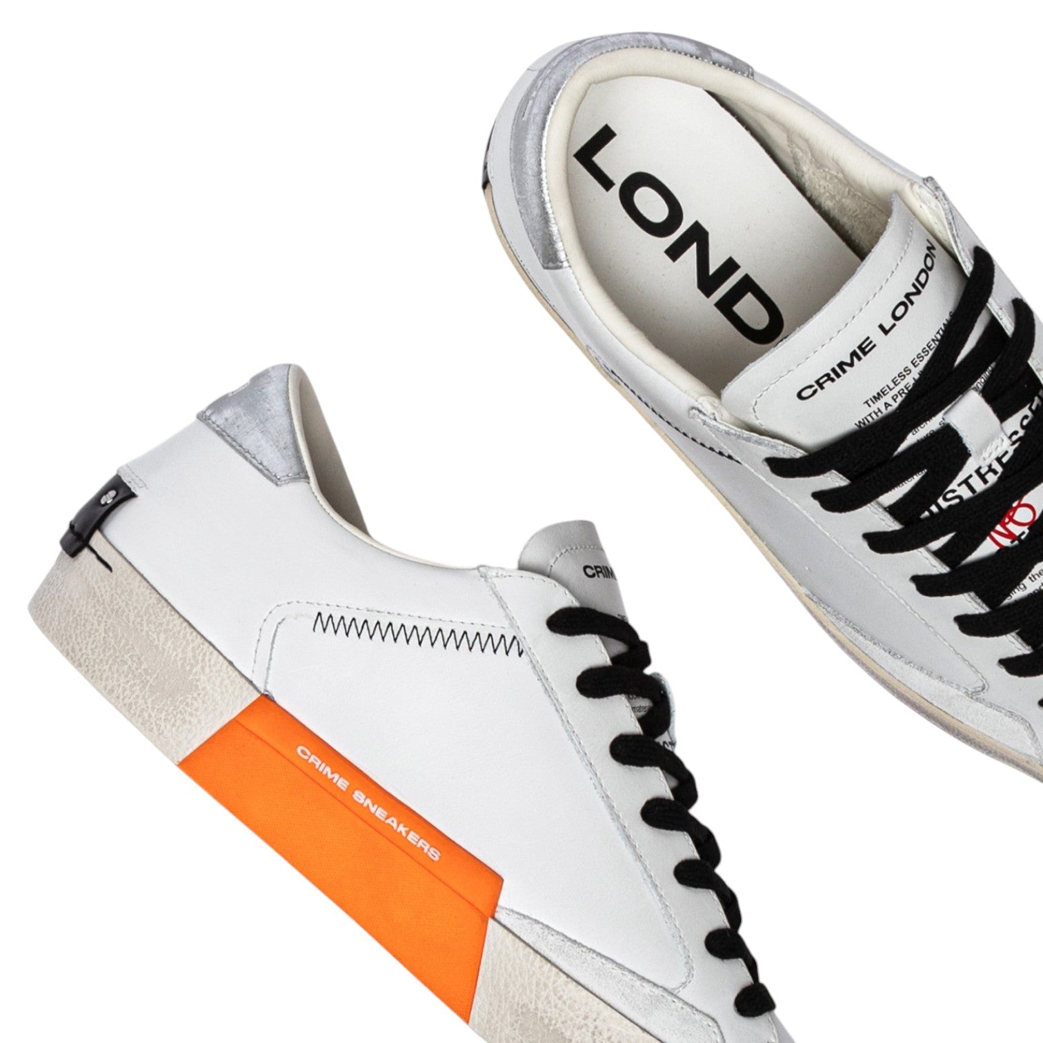 Crime London Sneakers Bianca Distressed Metallic Orange da Uomo