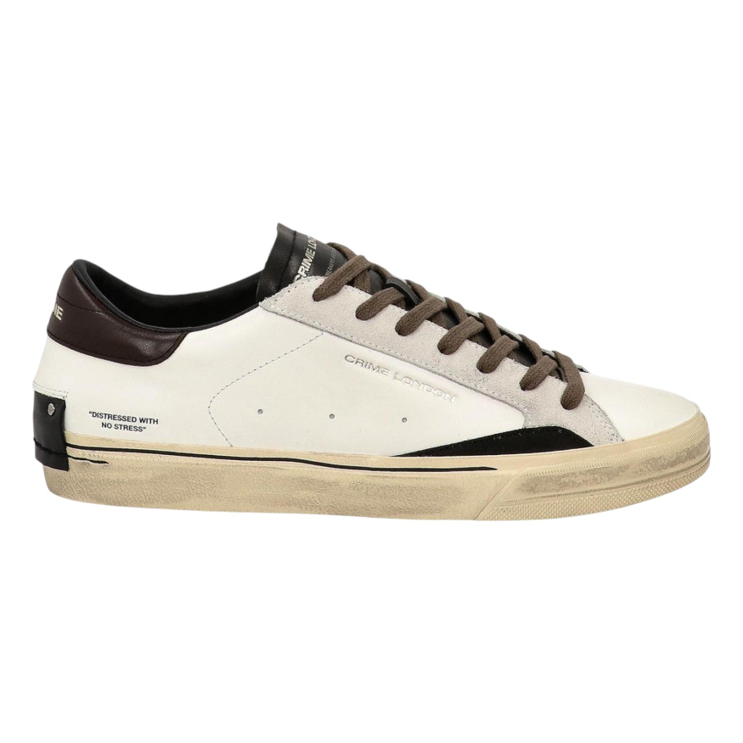 Crime London Sneakers Uomo in Pelle Bianco Marrone Distressed 2.0 Day Zero